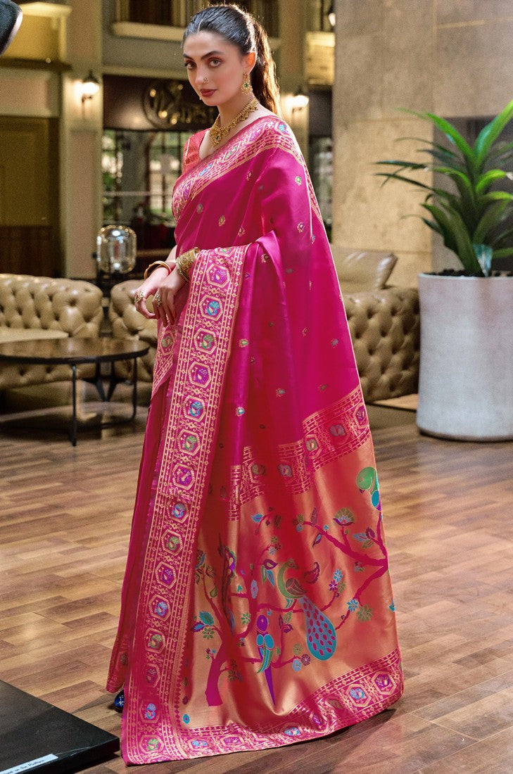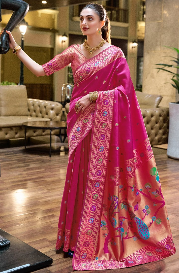 Beautiful Magenta Color Silk Fabric Partywear Saree