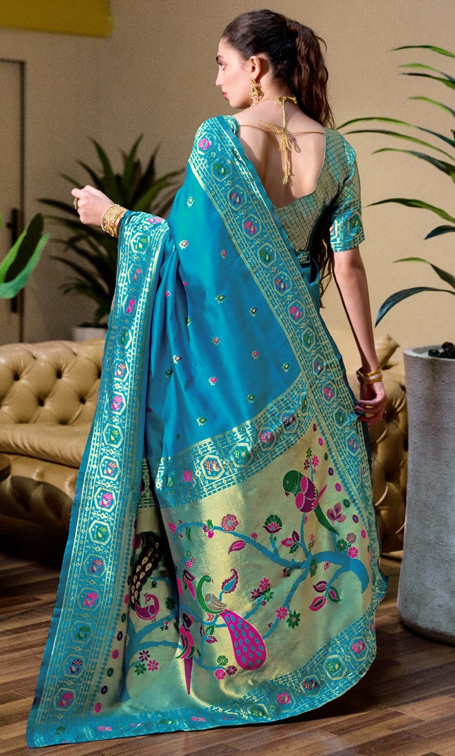 Color Saree Color - Turquoise, Blouse Color - Turquoise