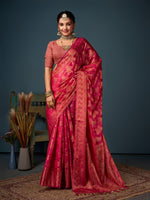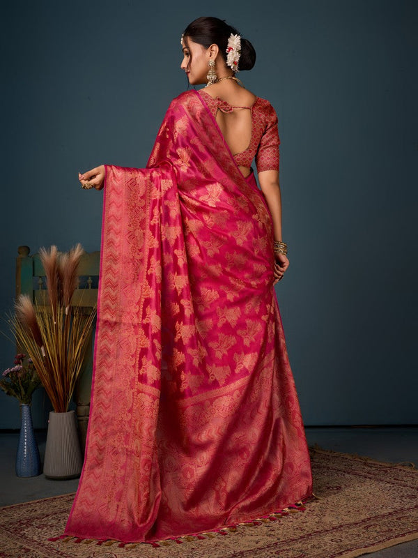 Lovely Pink Color Organza Fabric Partywear Saree