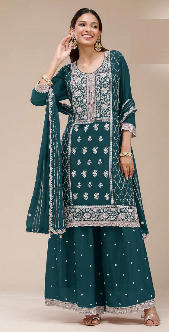 Desirable Teal Color Georgette Fabric Plazzo Suit