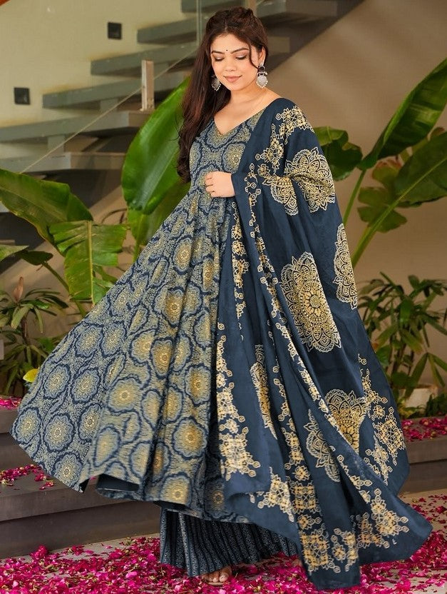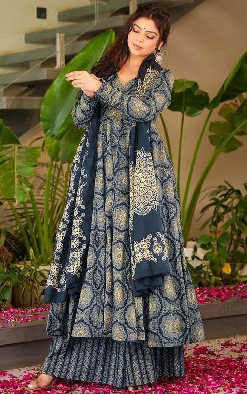 Divine Teal Color Muslin Fabric Plazzo Suit