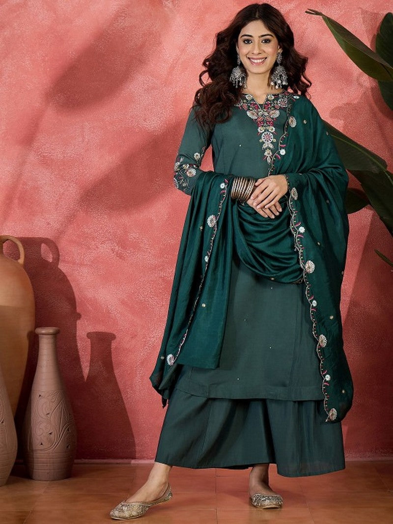 Ideal Green Color Chanderi Fabric Plazzo Suit