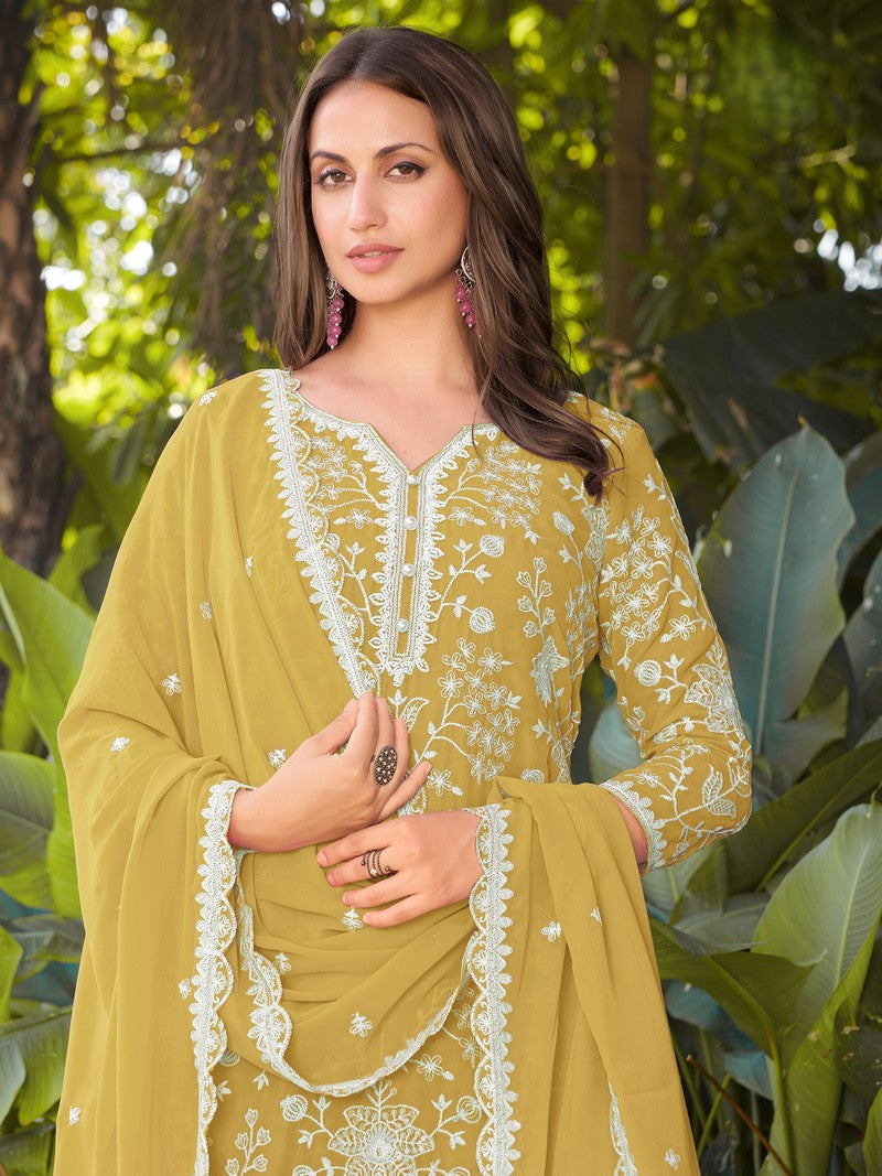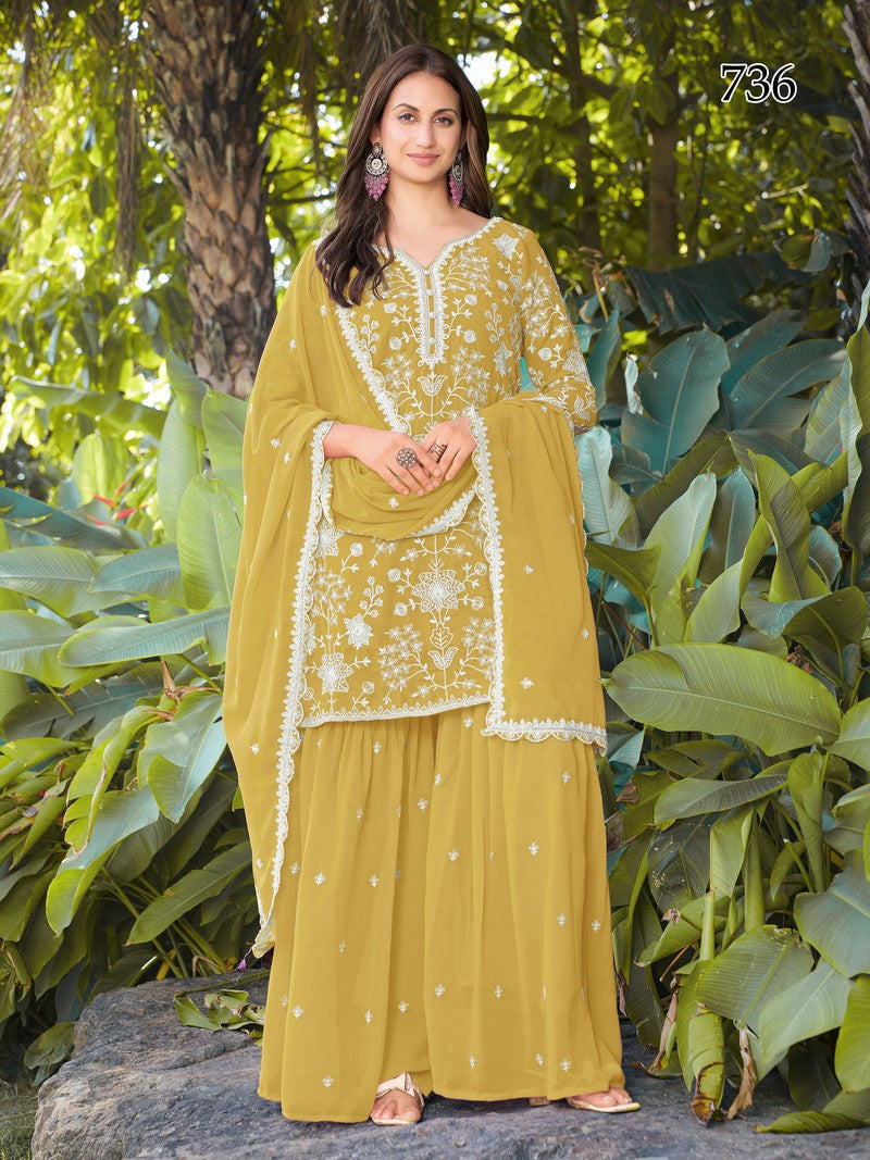 Striking Mustard Color Georgette Fabric Plazzo Suit