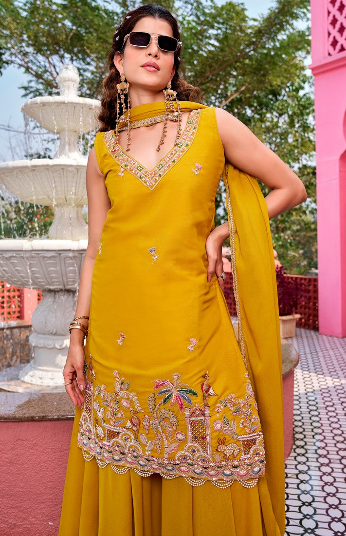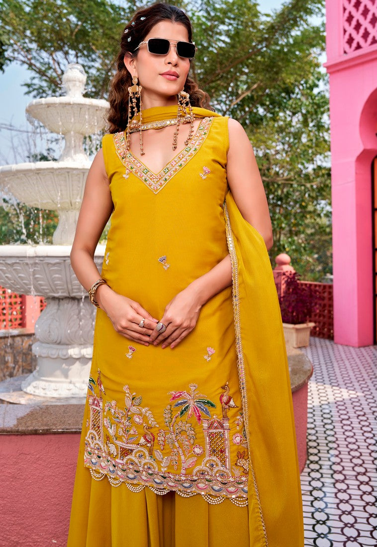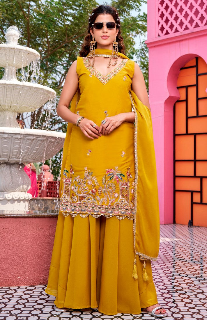 Tasteful Yellow Color Georgette Fabric Plazzo Suit