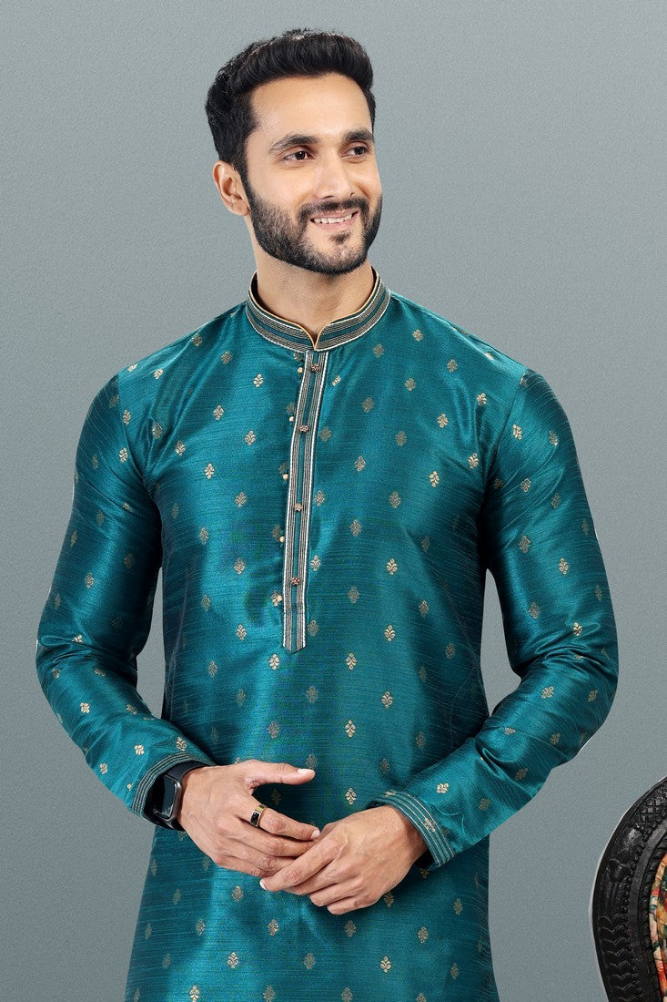 Amazing Teal Color Jacquard Fabric Kurta Pajama