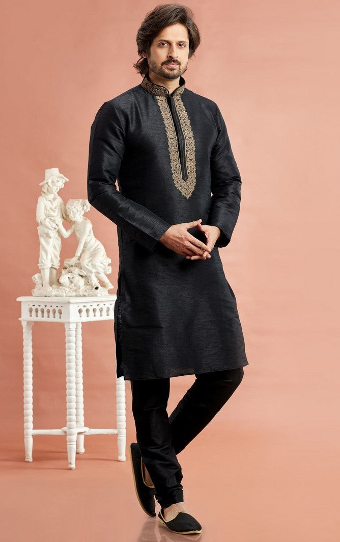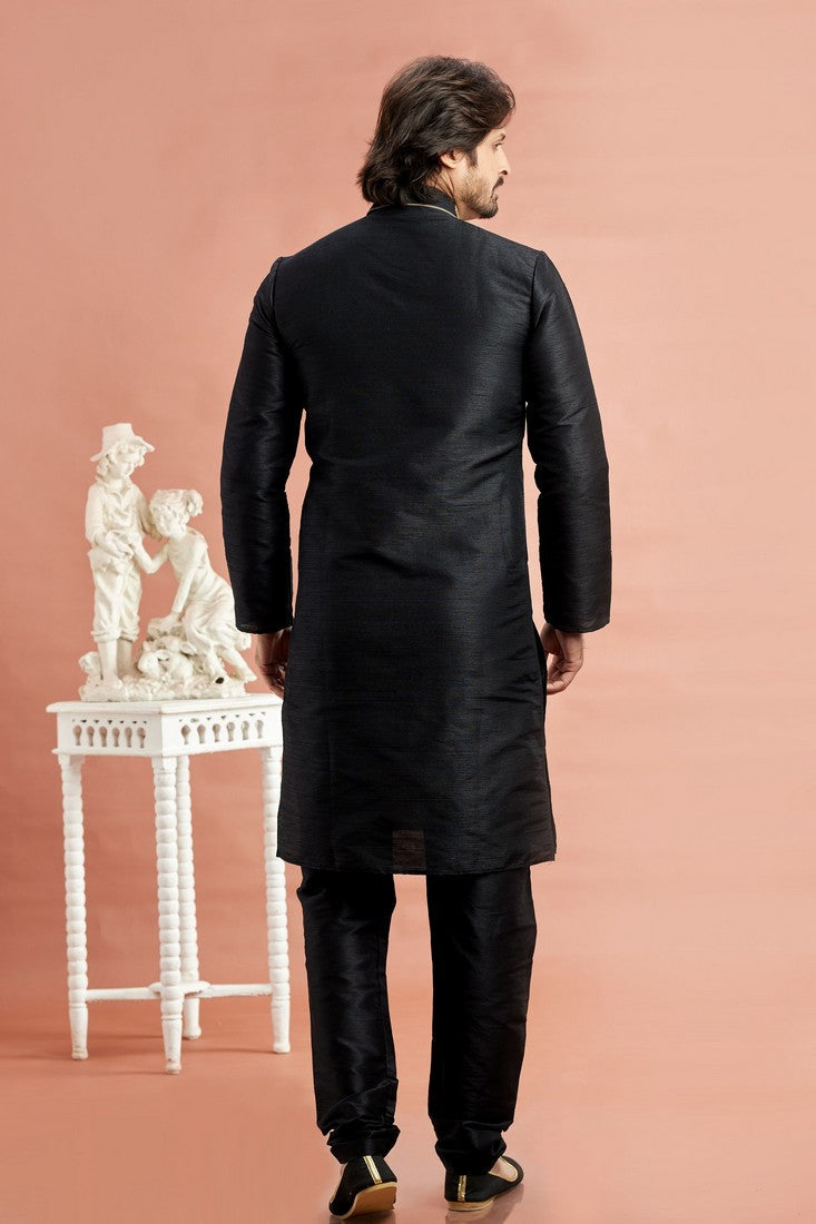 Fabulous Black Color Silk Fabric Kurta Pajama