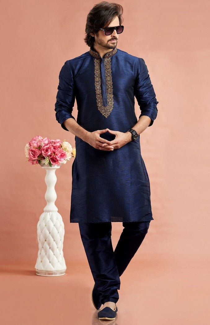 Fabulous Blue Color Silk Fabric Kurta Pajama