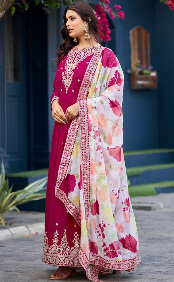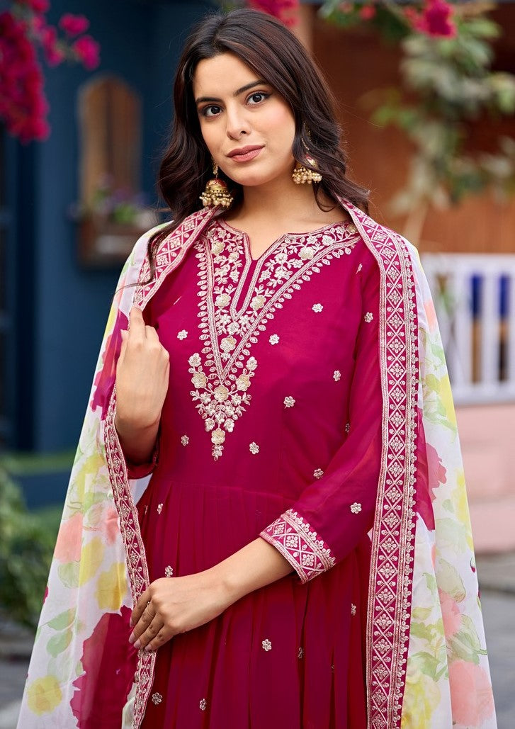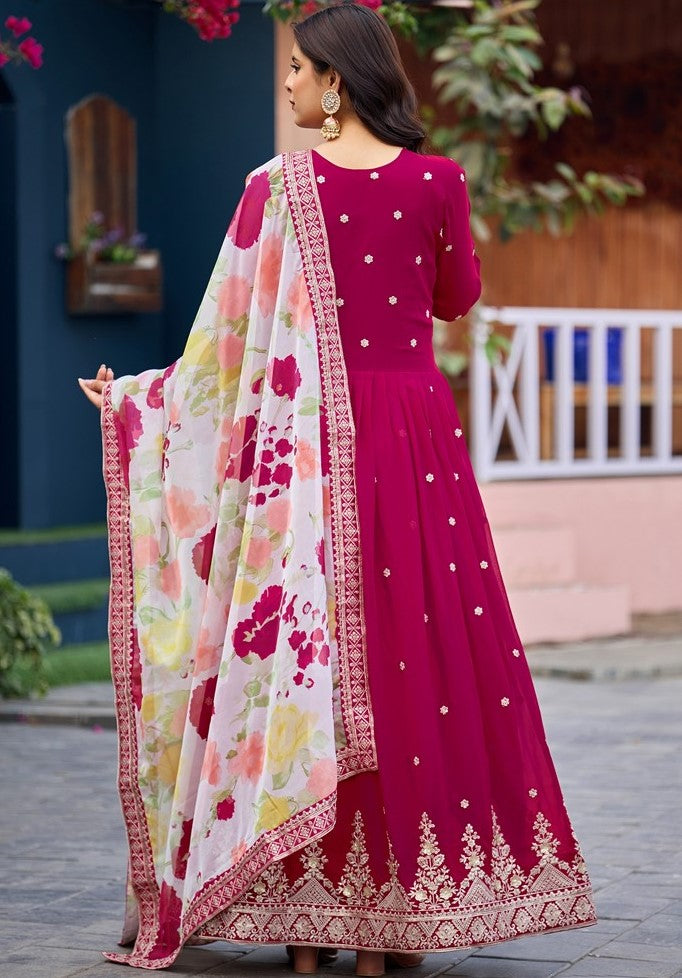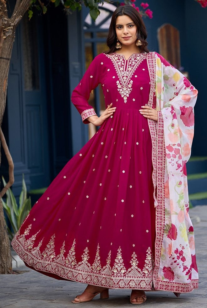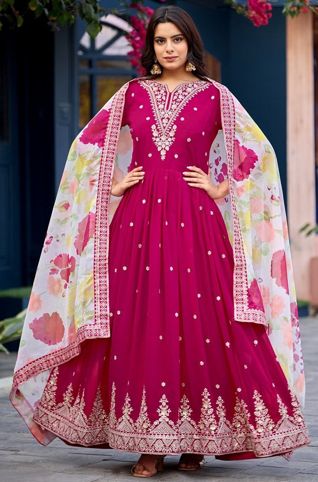 Attactive These Beautiful Looking Readymade Long Gown With Dupatta. These Gown Are Faux Georgette And Soft Silk Dupatta Fabricated. Its Beautified With Designer Thread,Sequance Embroidery Work.