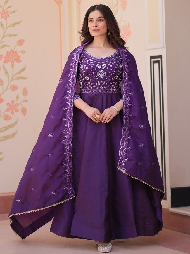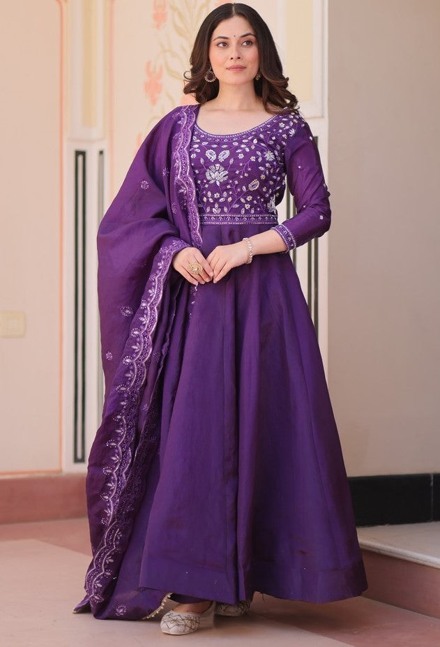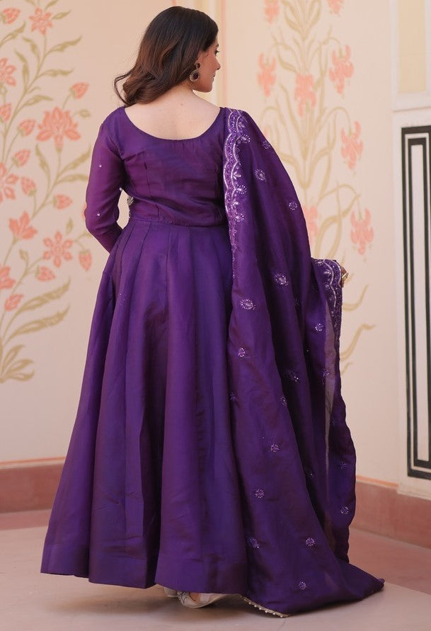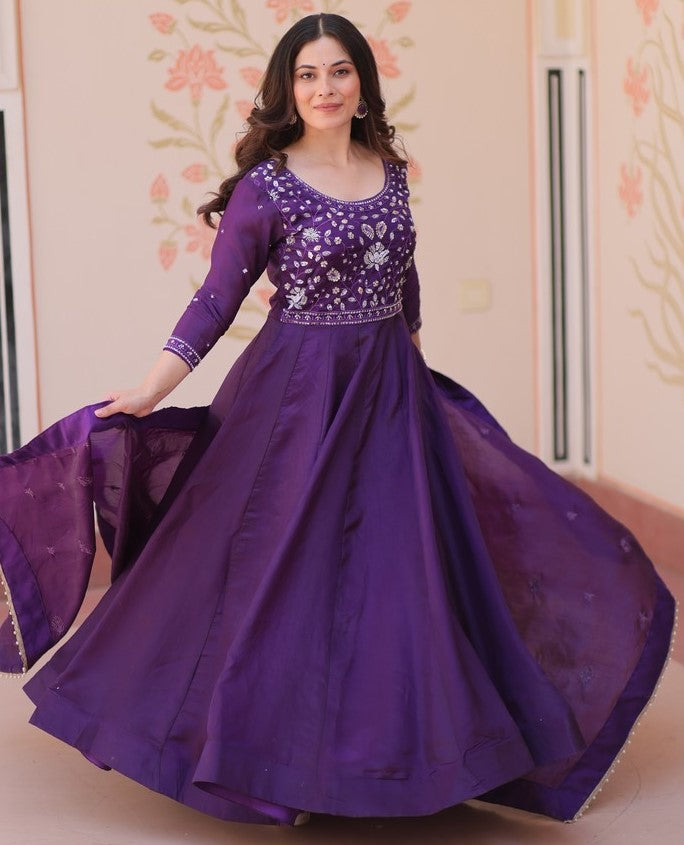 Amazing Purple Color Crush Fabric Gown