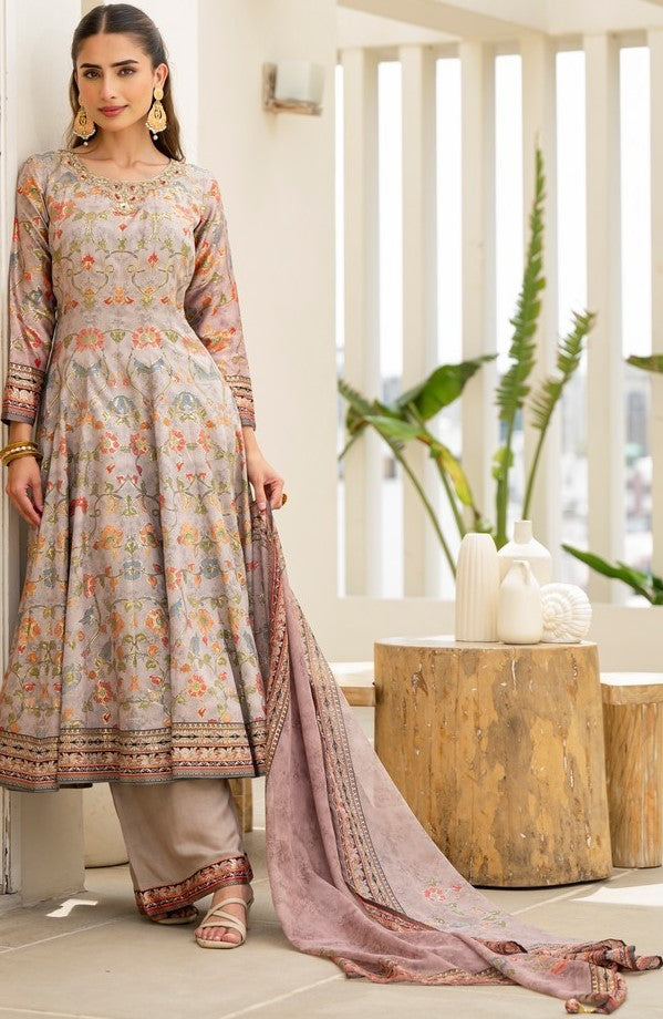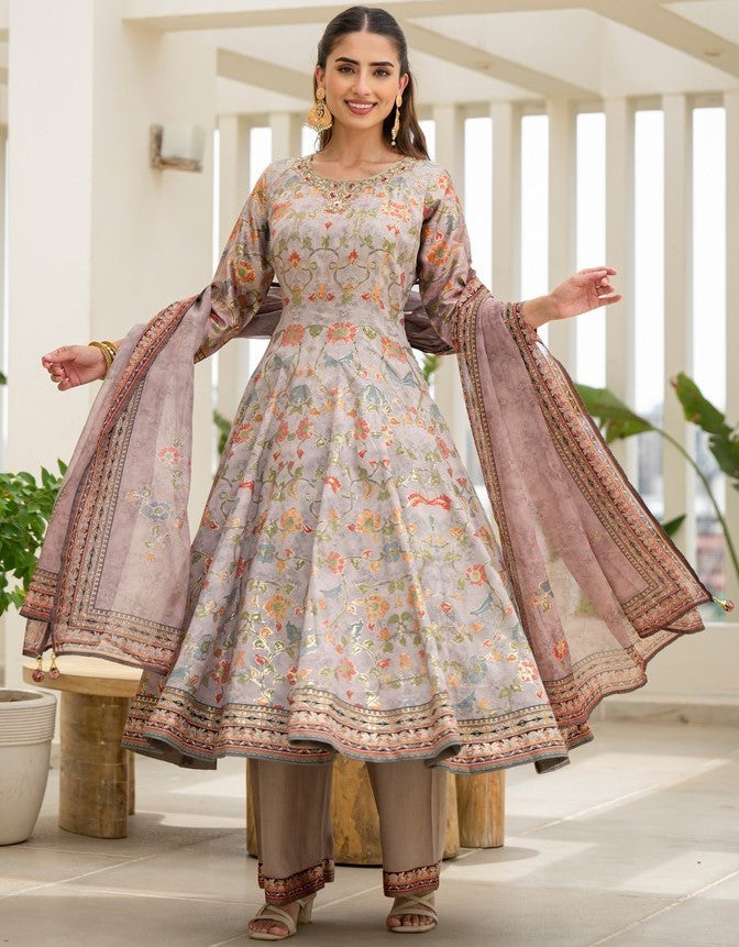 Beauteous Grey Color Silk Fabric Plazzo Suit