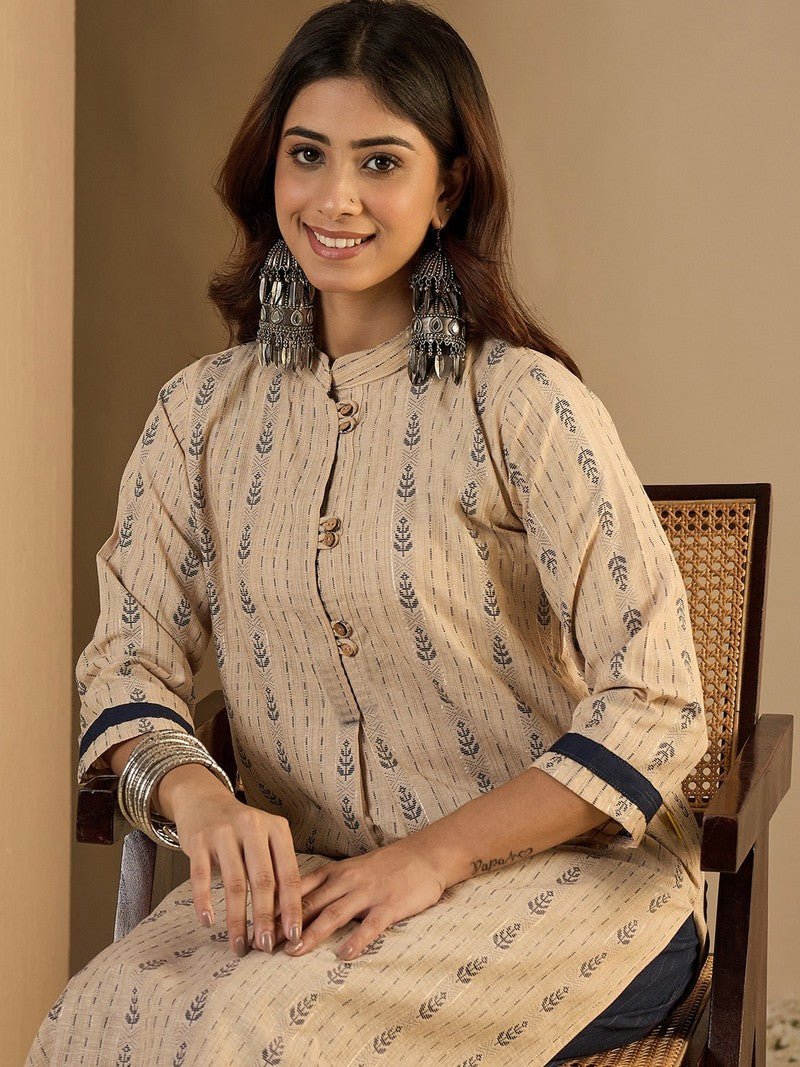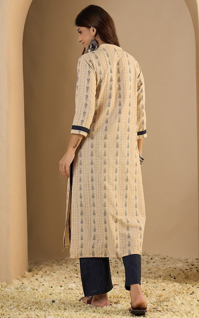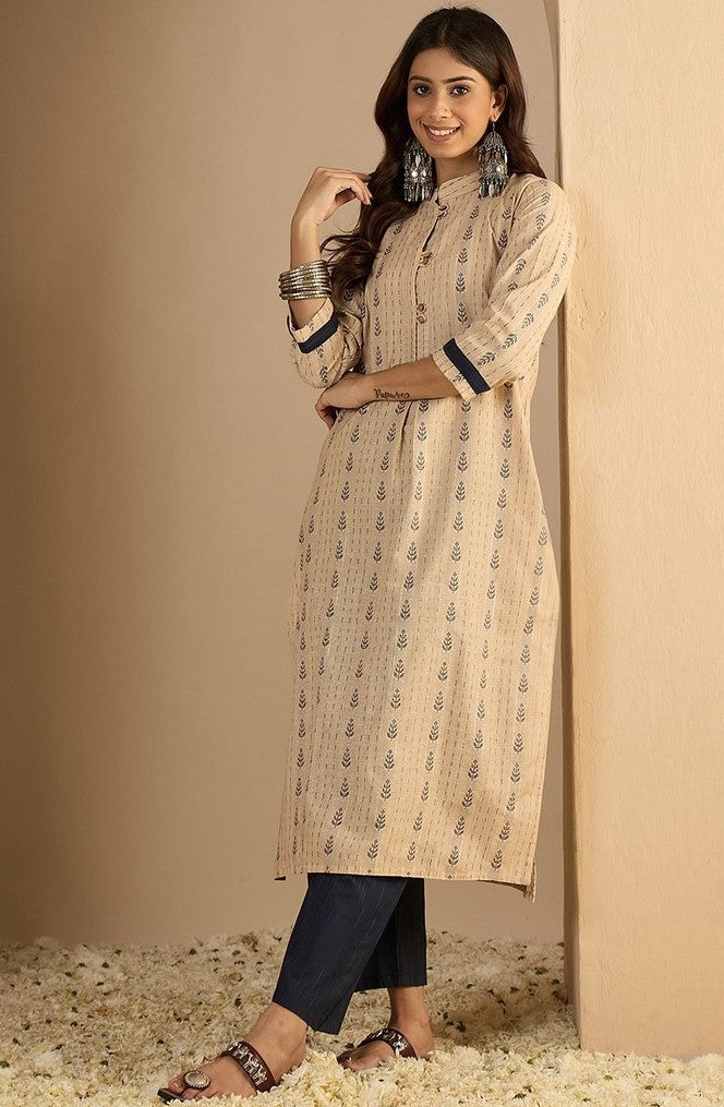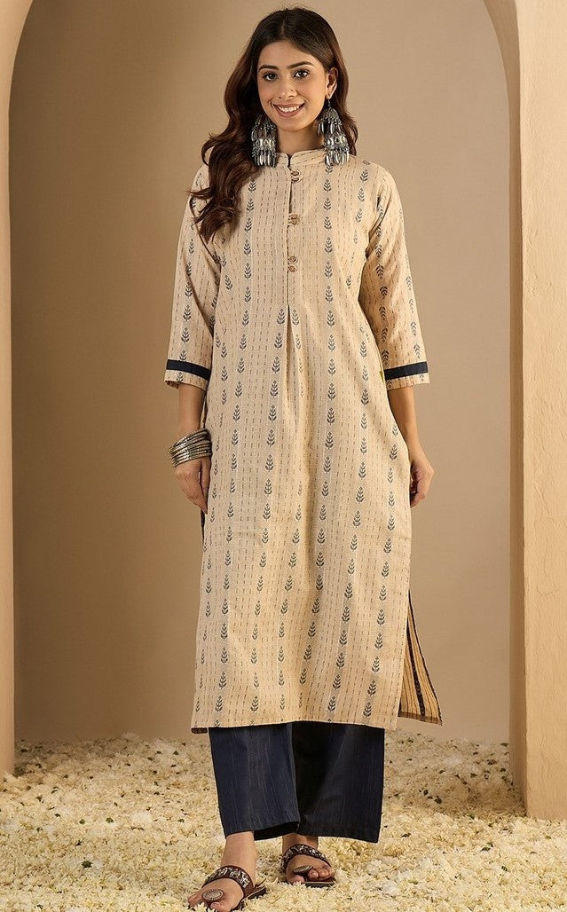 Beautiful Beige Color Cotton Fabric Designer Kurti