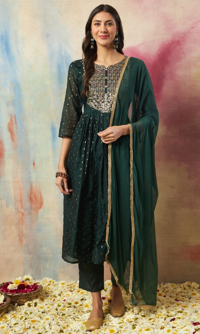 | Color | Top Color - Green, Bottom Color - Green, Dupatta Color - Green |