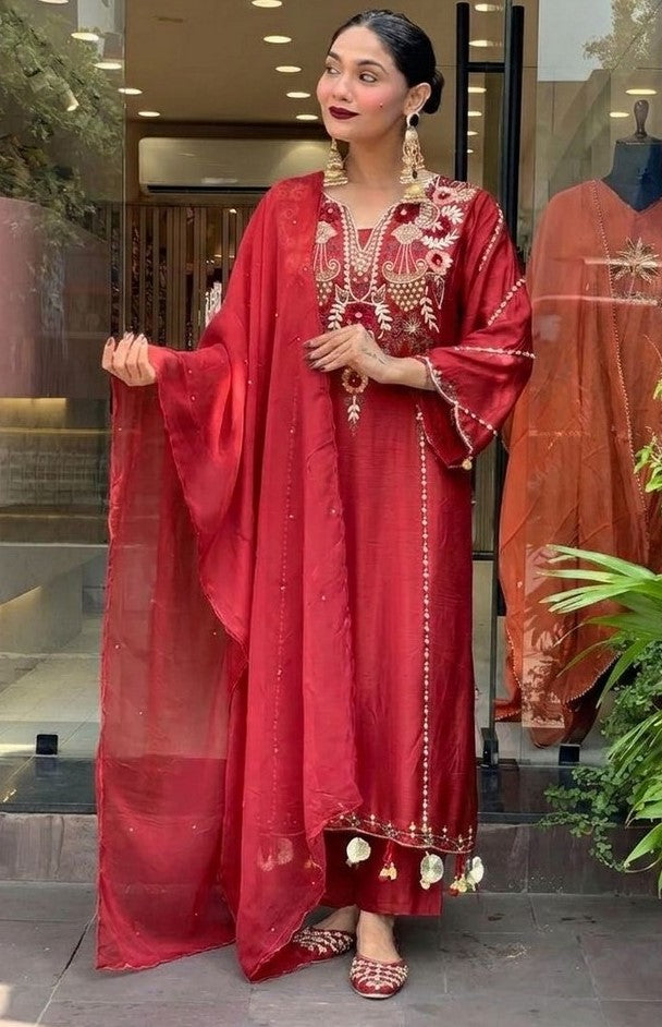 Color Top Color - Maroon, Bottom Color - Maroon, Dupatta Color - Maroon