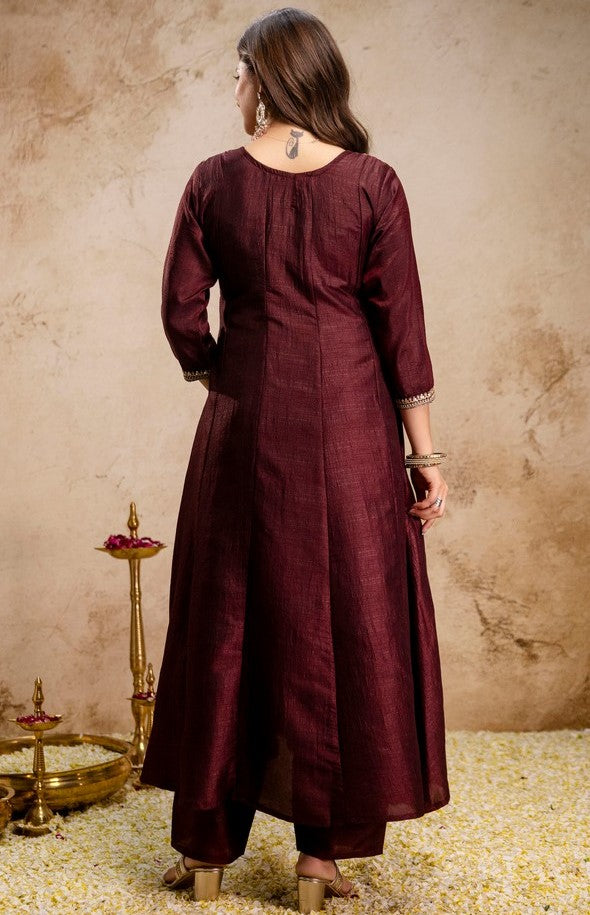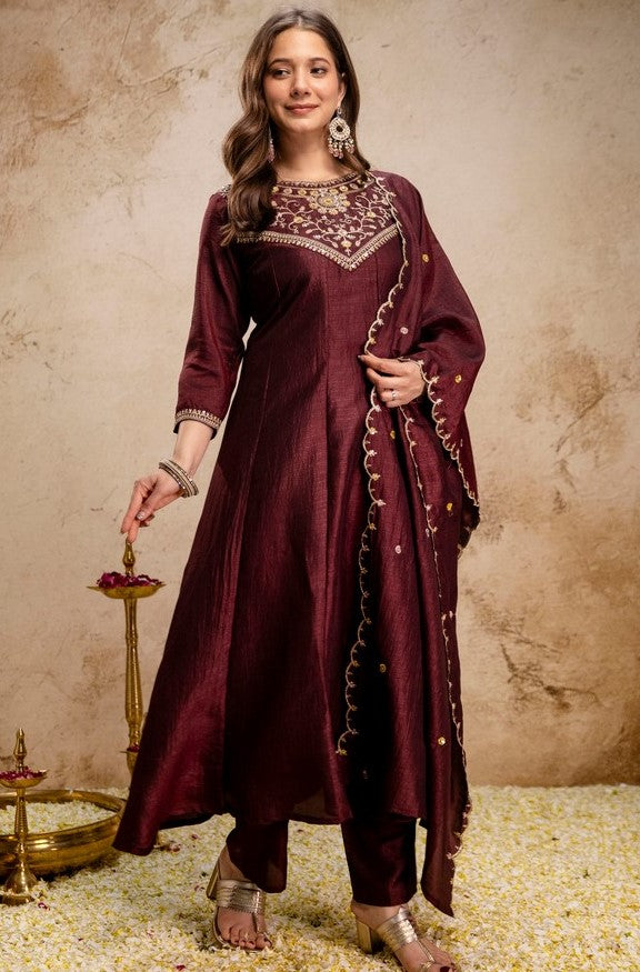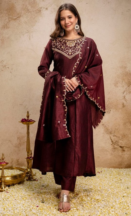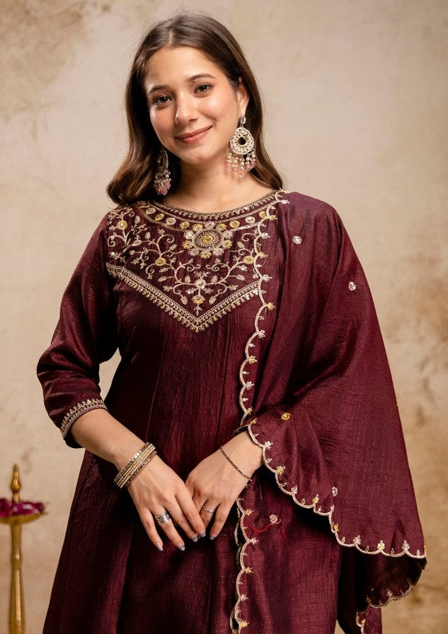 Beautiful Maroon Color Vichitra Fabric Designer Suit