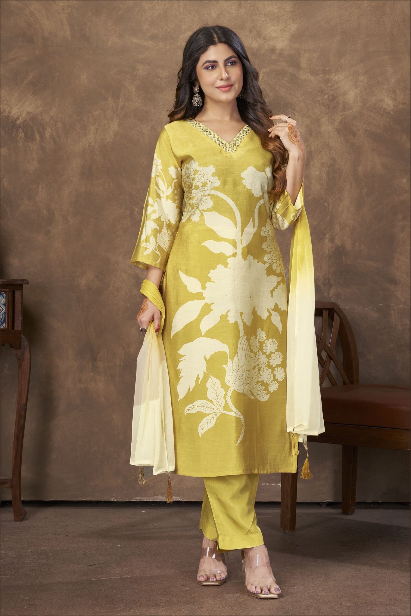 Beautiful Mustard Color Chanderi Fabric Casual Suit