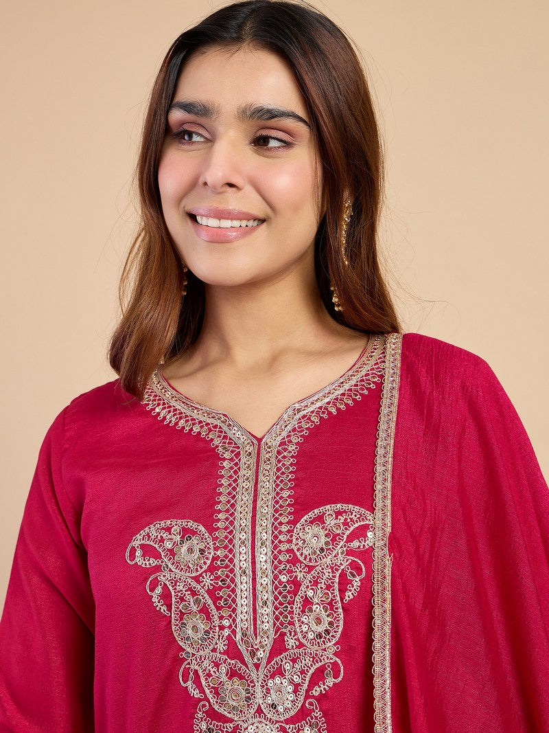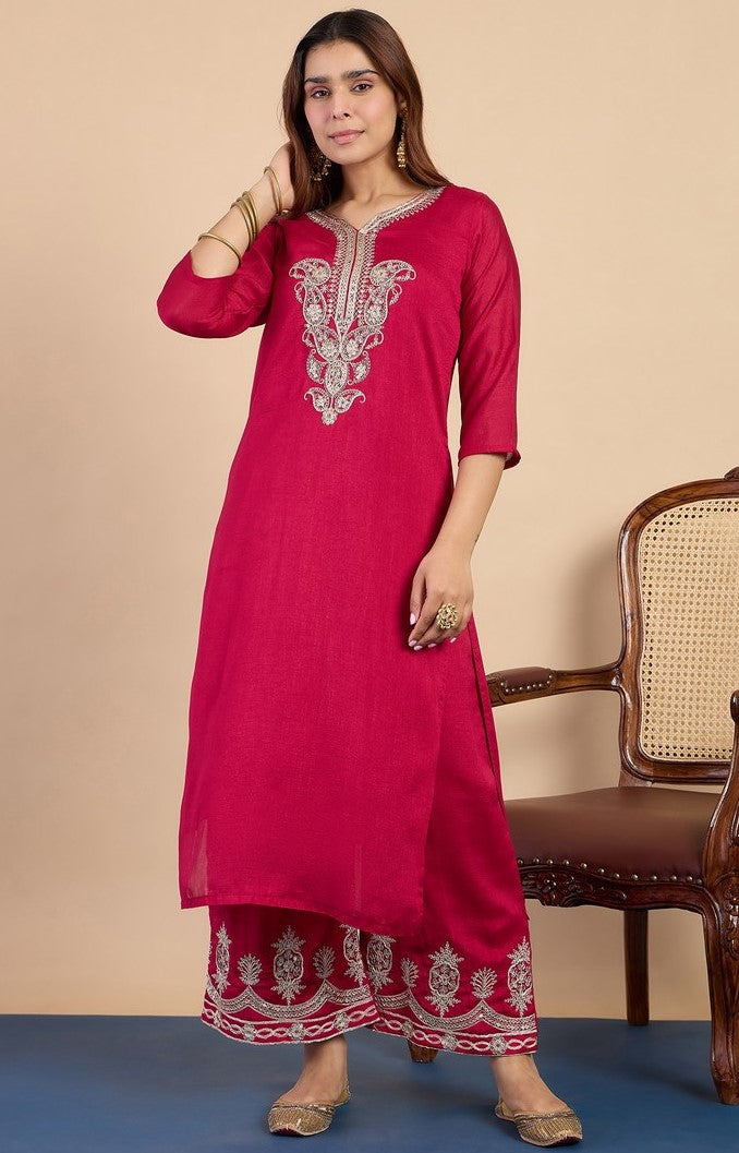 Beautiful Pink Color Silk Fabric Designer Suit