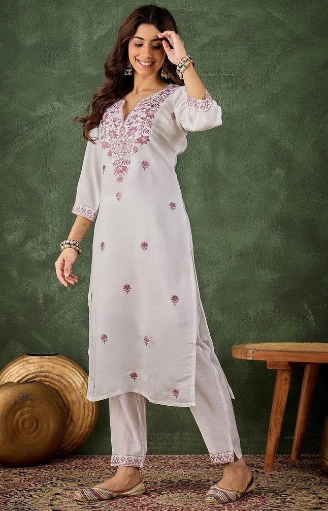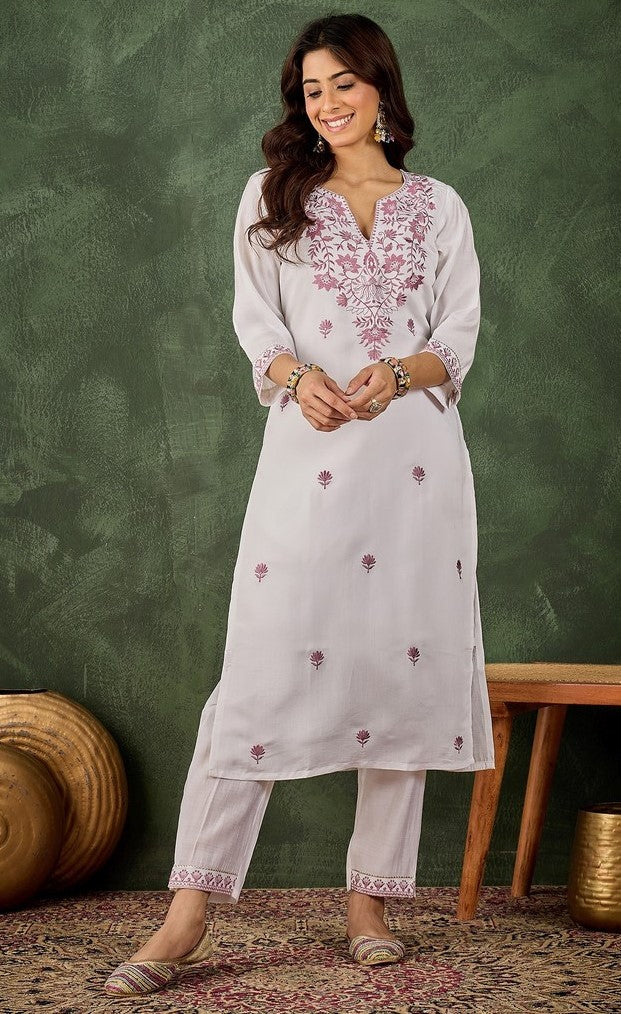 Beautiful White Color Silk Fabric Designer Kurti