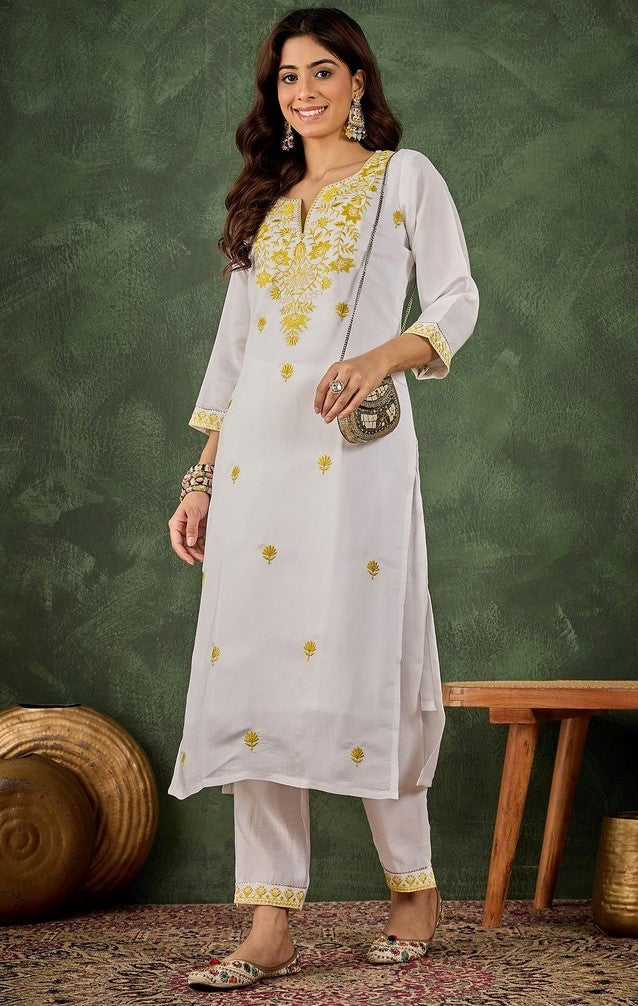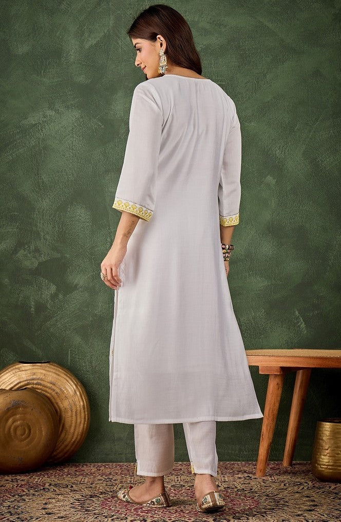 Beautiful White Color Silk Fabric Designer Kurti