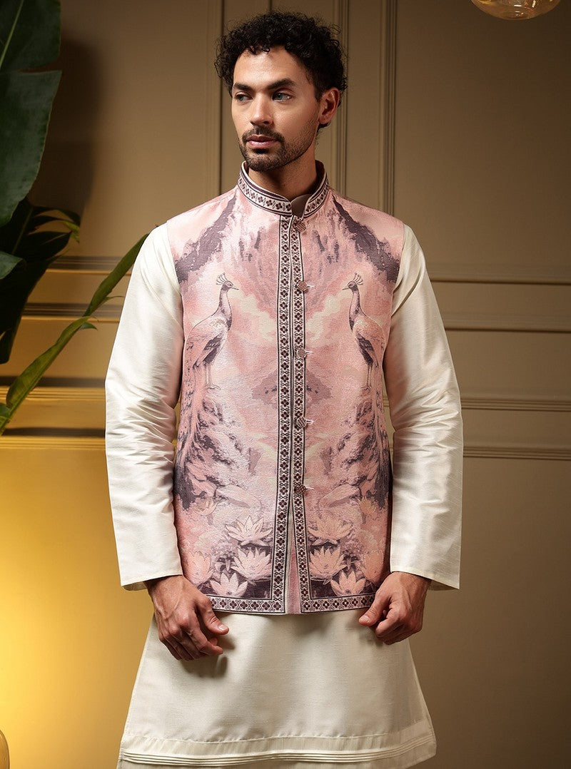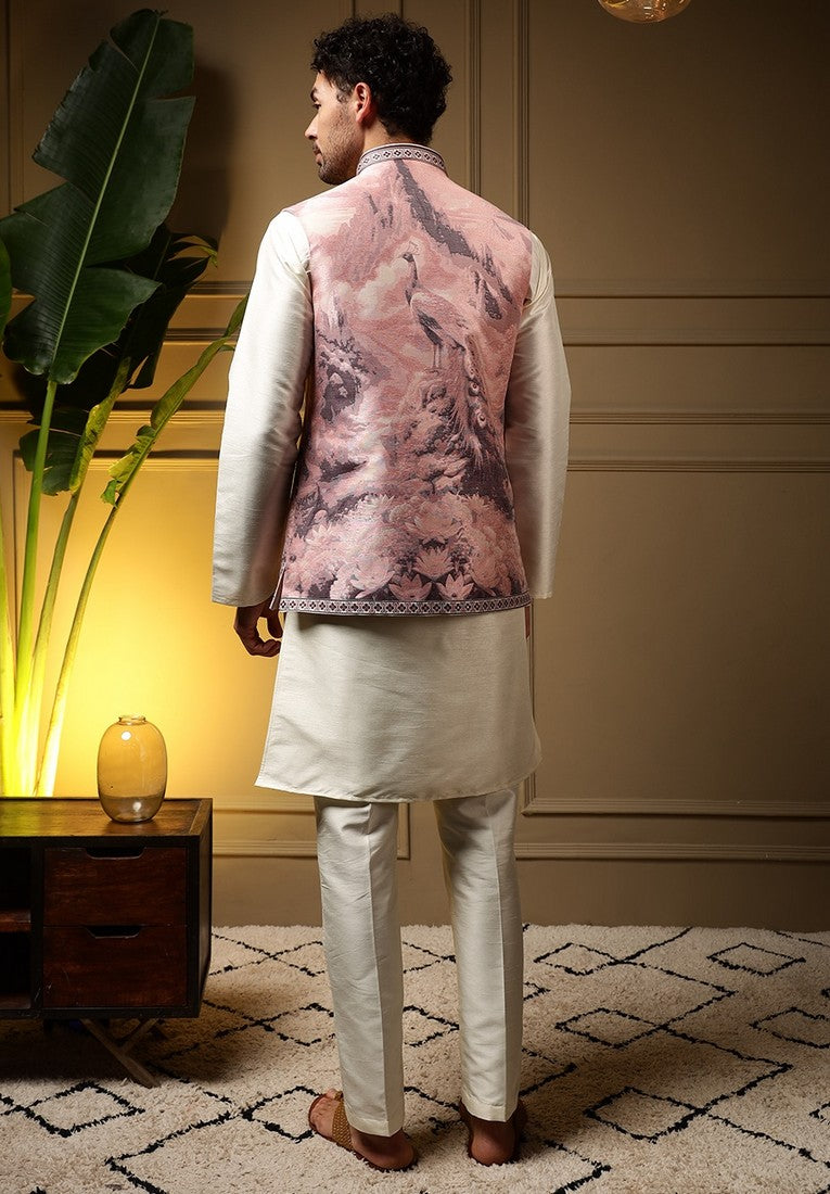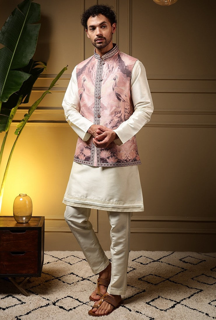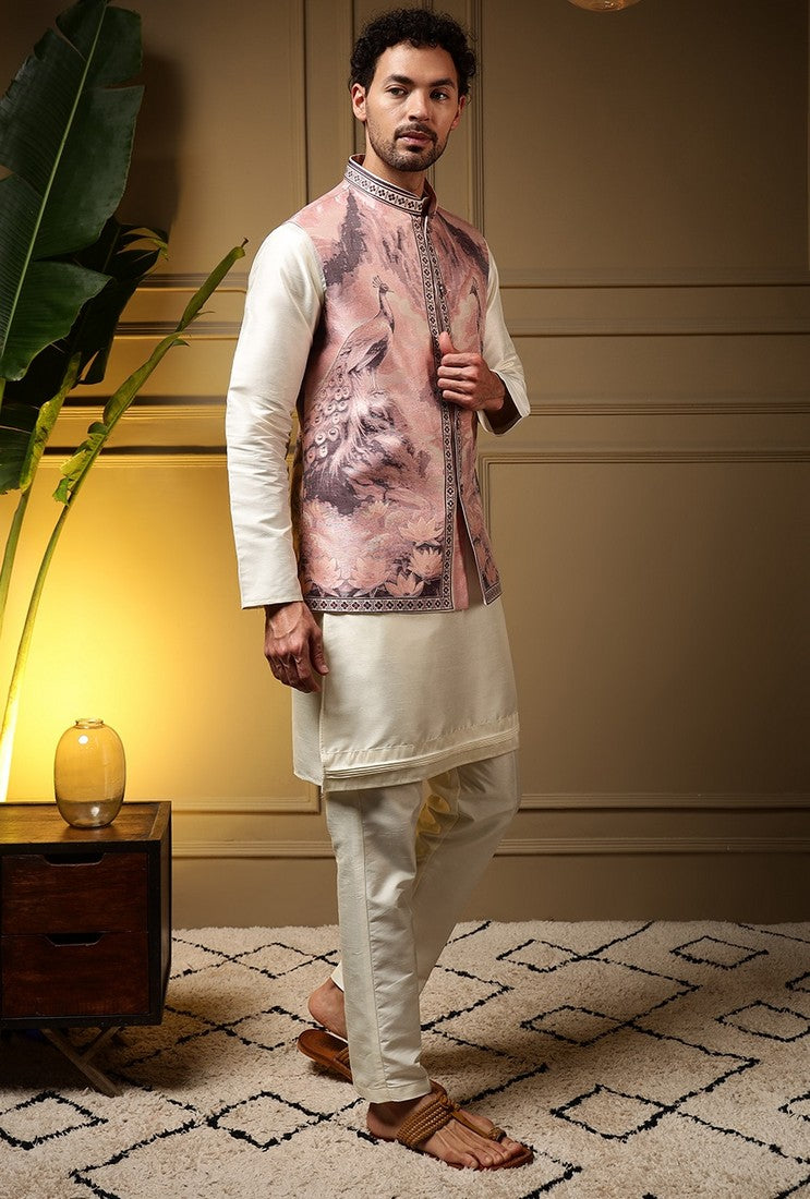 Grand Cream Color Silk Fabric Kurta and Pajama with Koti
