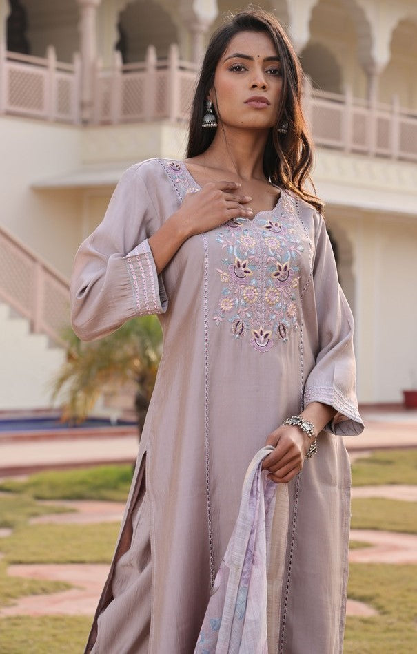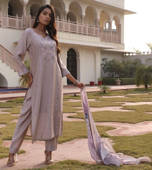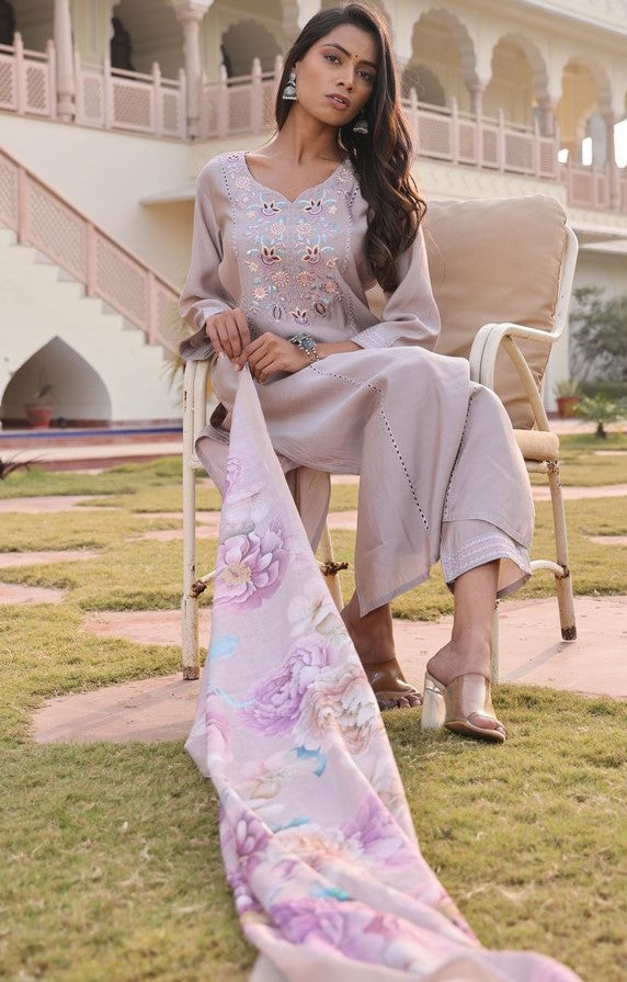 Color Top Color - Beige, Bottom Color - Beige, Dupatta Color - Beige