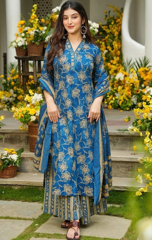 Lovely Turquoise Color Muslin Fabric Plazzo Suit