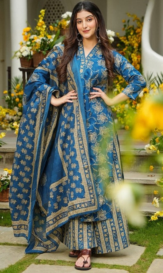 Attractive Looking These Beautiful Looking Readymade Plazzo Suits.These Top Are Muslin And Bottom is Fabricated On Muslin And Muslin Dupatta.Its Beautified With Designer Digital Printed.