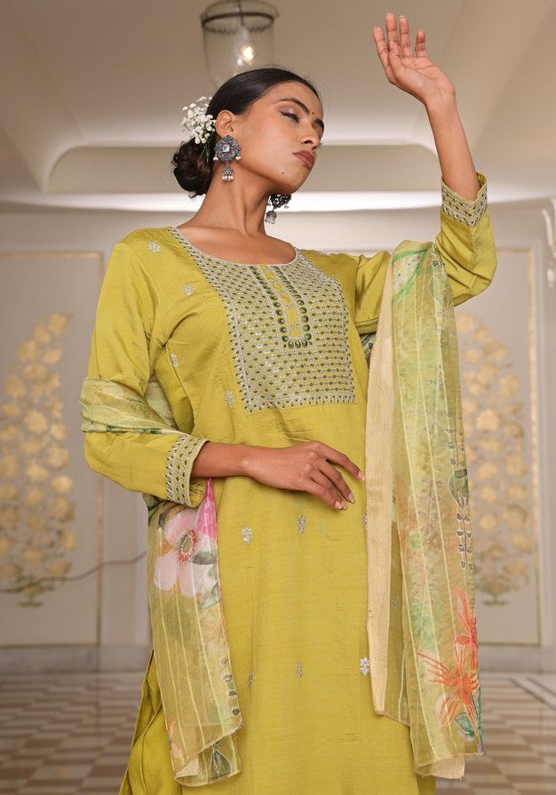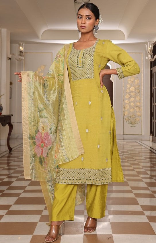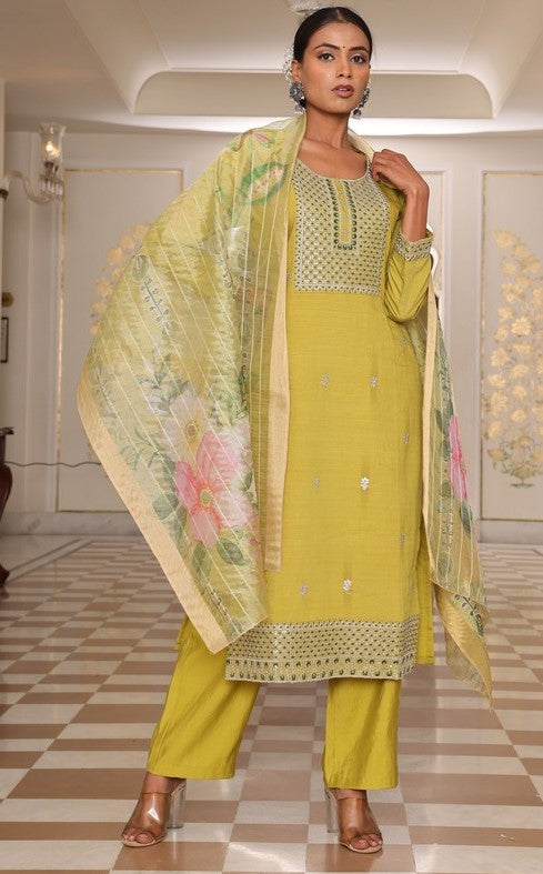 | Color | Top Color - Yellow, Bottom Color - Yellow, Dupatta Color - Yellow |