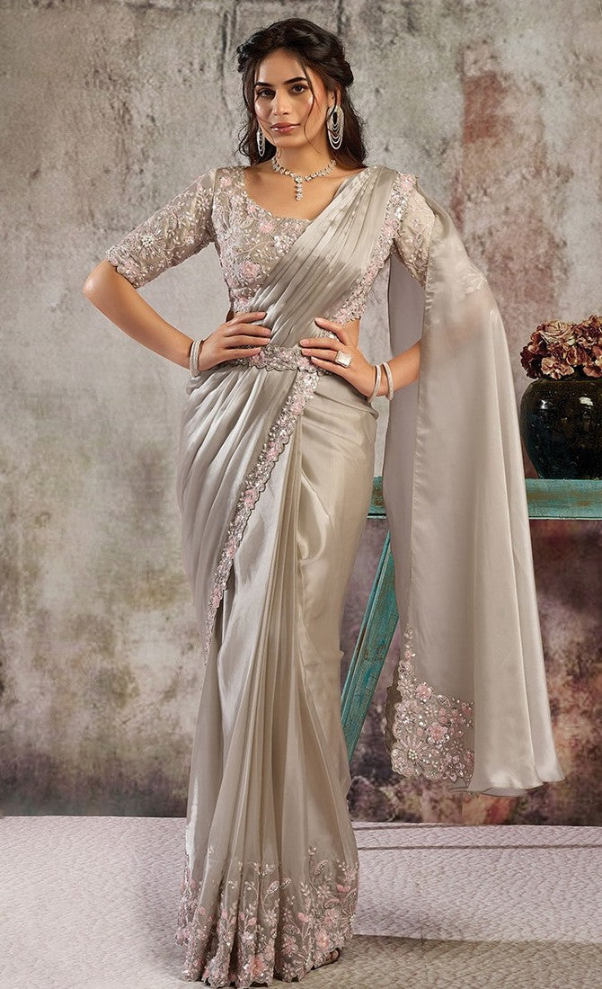 Look Attractive These Designer Party Wear Ready To Wear Saree With Blouse in Fine Colored. These Saree Are Crytal Organza Satin Silk And Blouse Jari Brocade Silk is Fabricated. Its Beautified Heavy Fancy Desiger Embroidery With Hand Work .