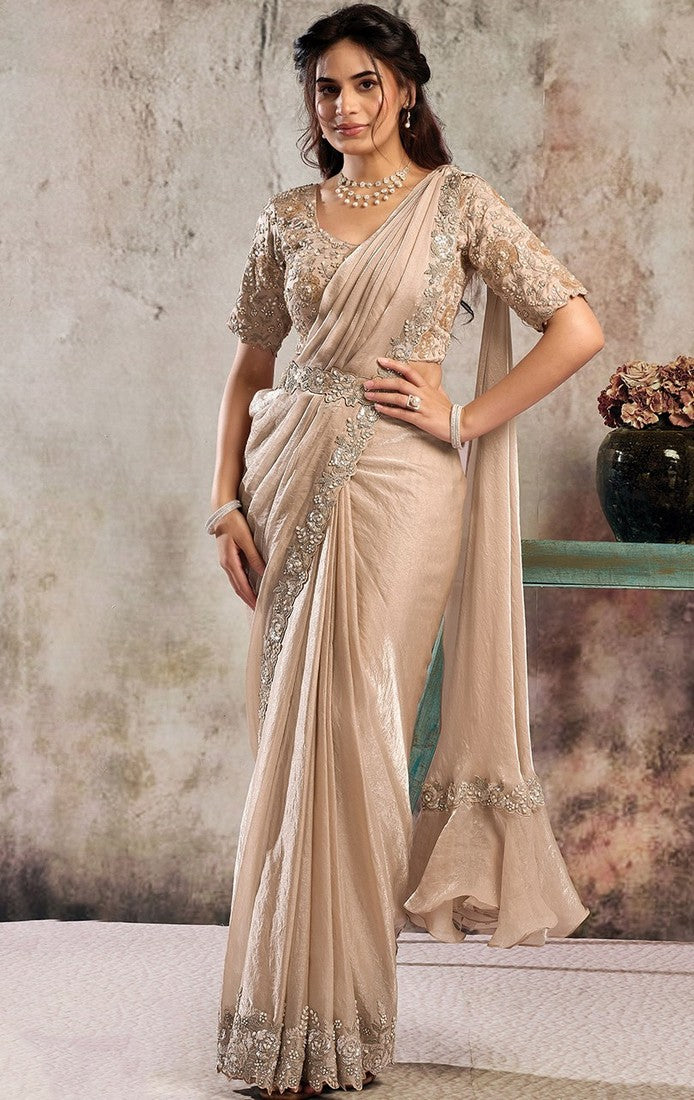 Look Attractive These Designer Party Wear Ready To Wear Saree With Blouse in Fine Colored. These Saree Are Crytal Organza Satin Silk And Blouse Jari Brocade Silk is Fabricated. Its Beautified Heavy Fancy Desiger Embroidery With Hand Work .