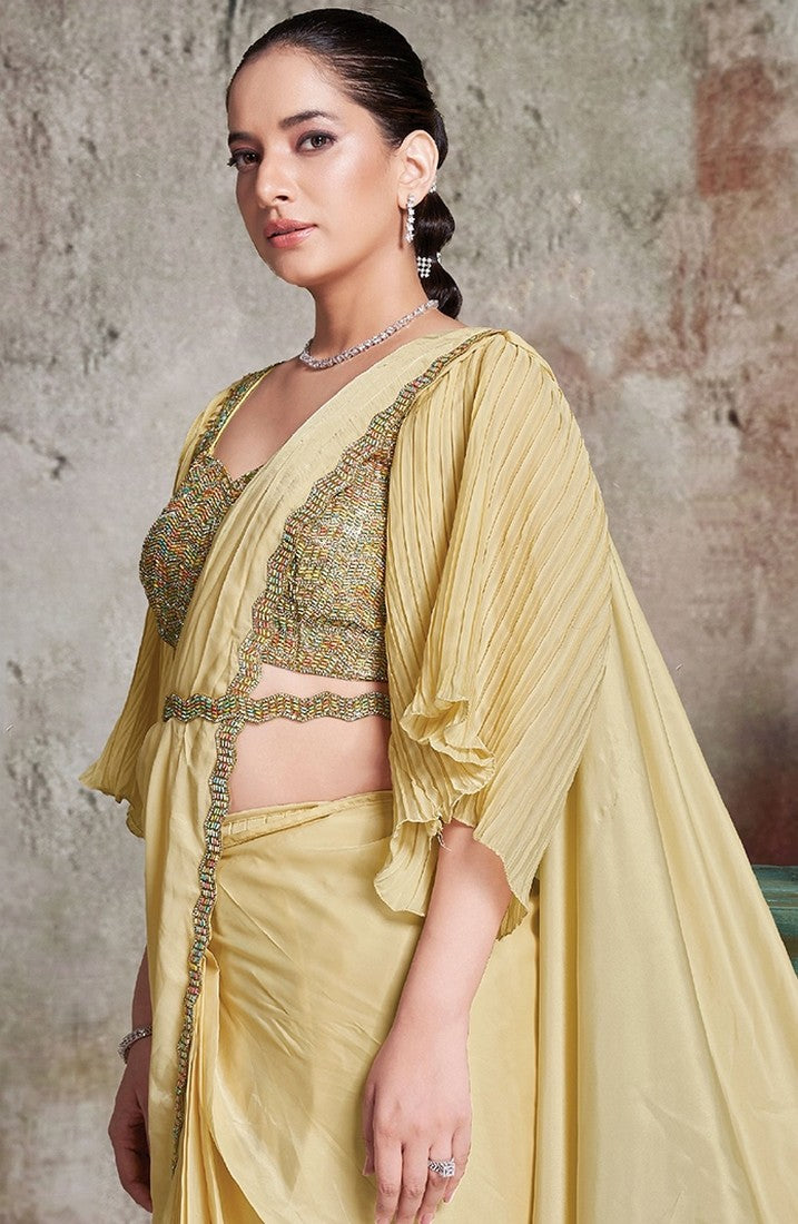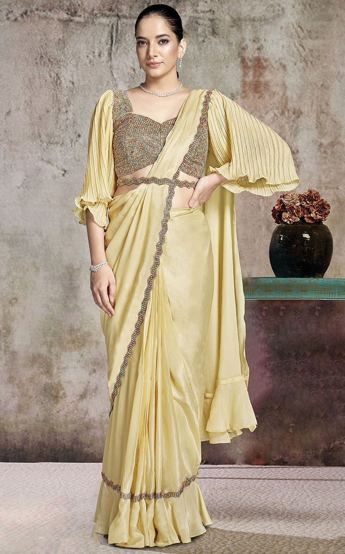 Lovely Yellow Color Silk Fabric Readymade Saree
