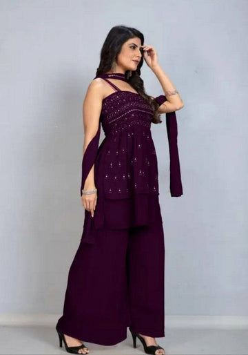 Tasteful Voilet Color Georgette Fabric Plazzo Suit