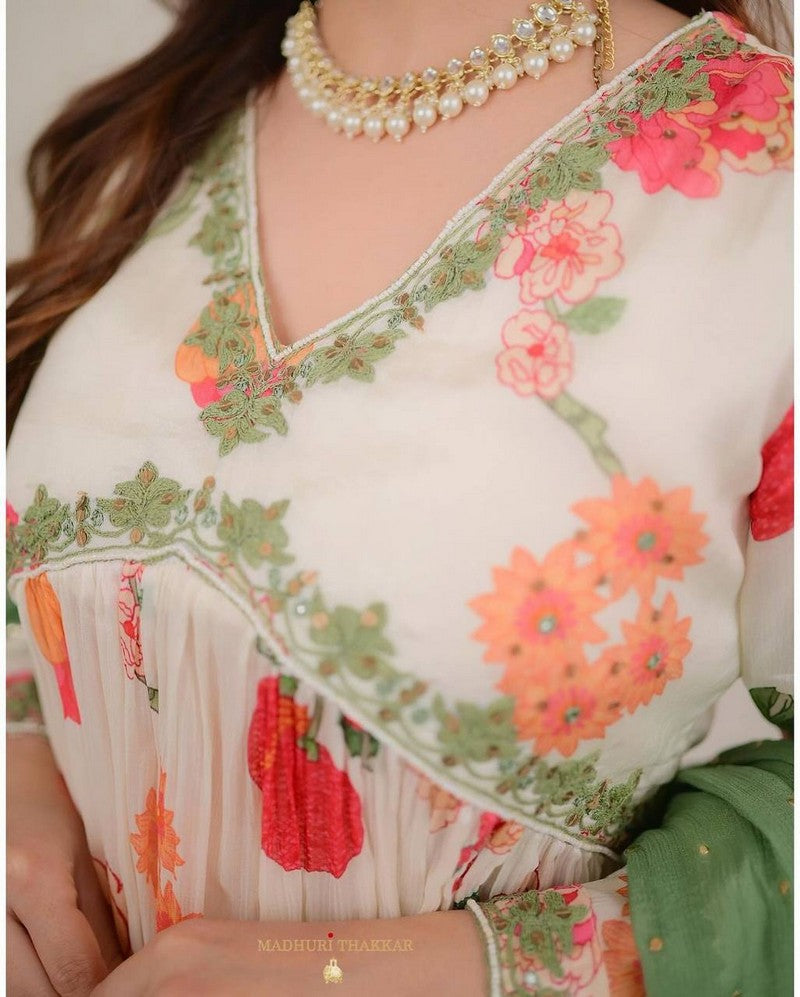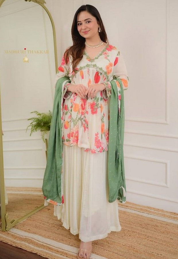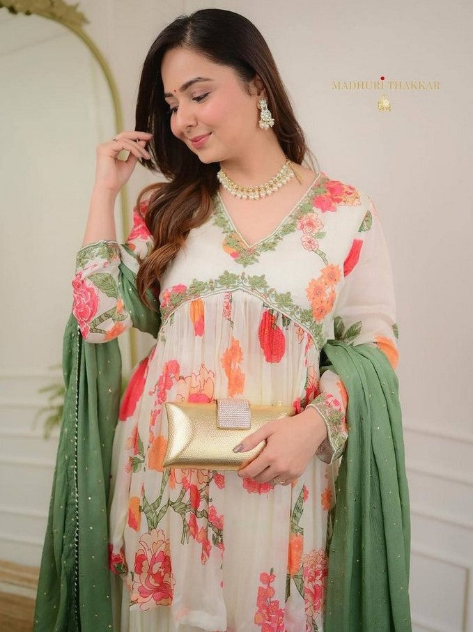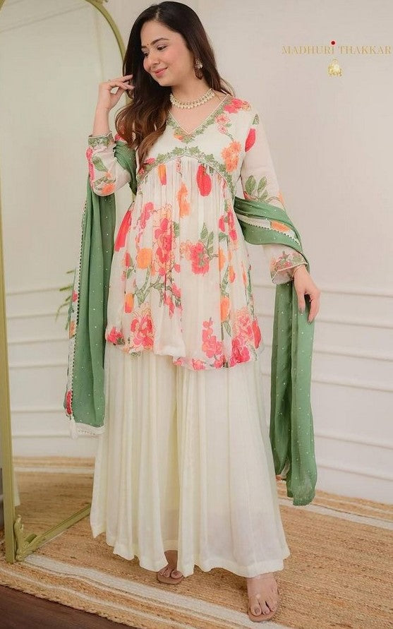 Amazing White Color Georgette Fabric Designer Suit