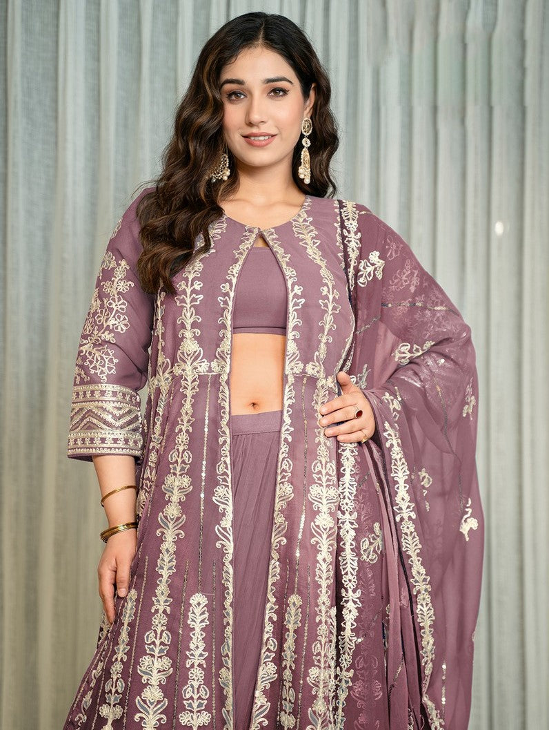 Beauteous Purple Color Georgette Fabric Designer Suit