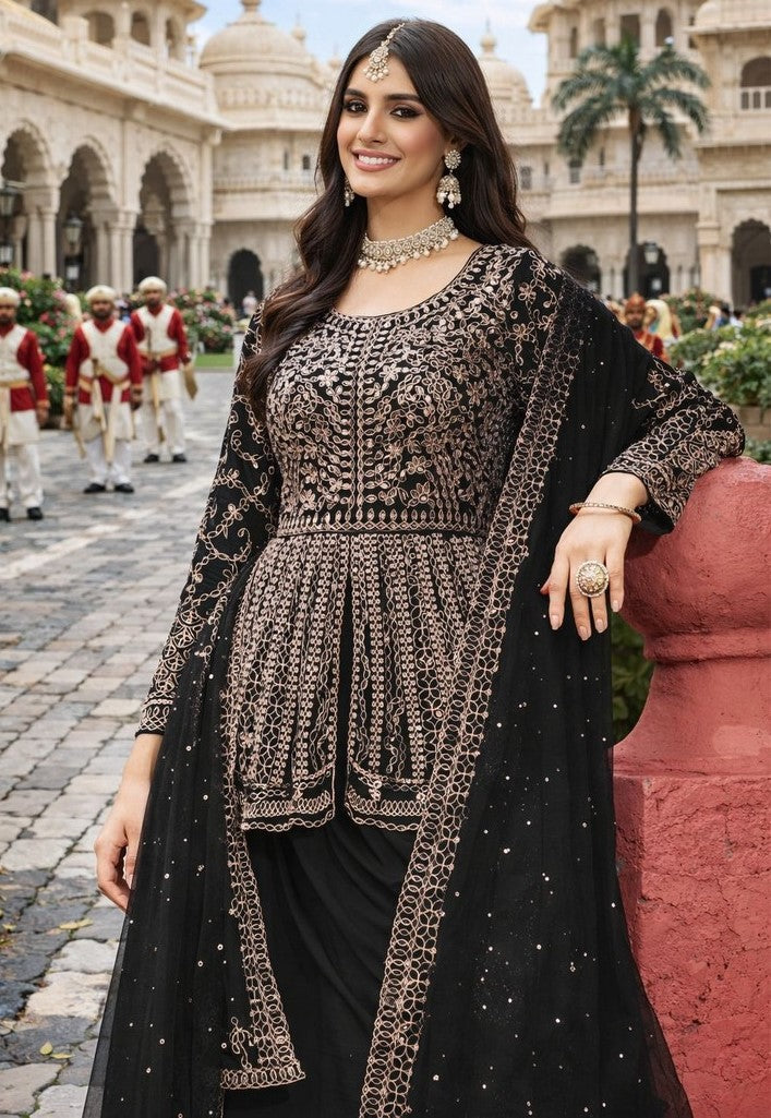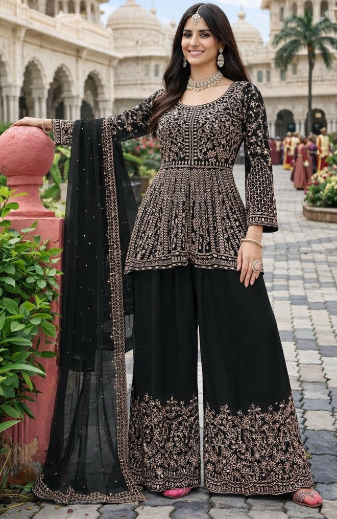 Beautiful Black Color Chinon Fabric Plazzo Suit