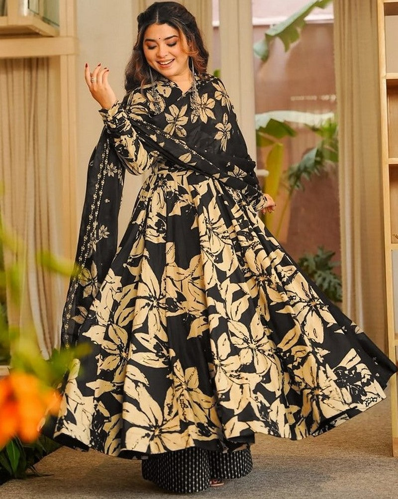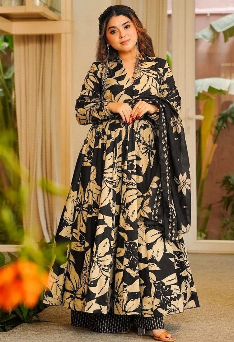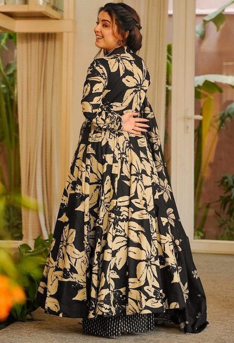 Beautiful Black Color Muslin Fabric Plazzo Suit
