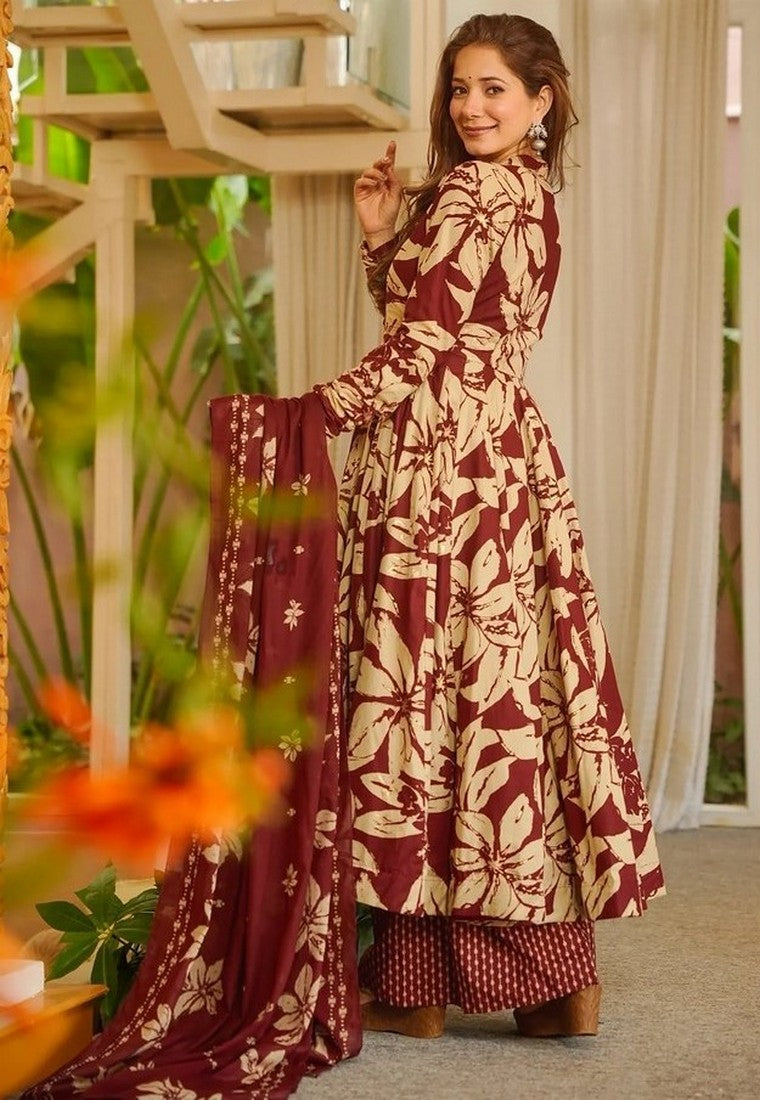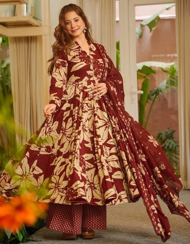 Beautiful Maroon Color Muslin Fabric Plazzo Suit