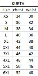 | Size | XS(34"),S(36"),M(38"),L(40"),XL(42"),XXL(44"),3XL(46"),4XL(48"),5XL(50"),6XL(52") |