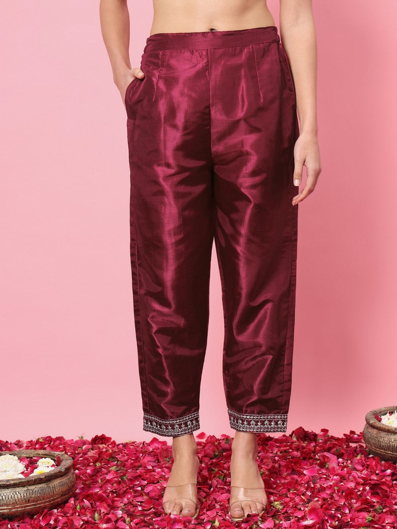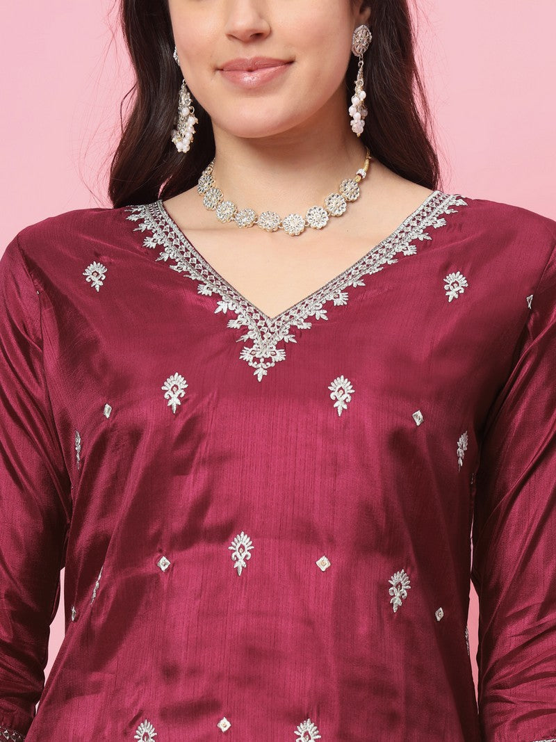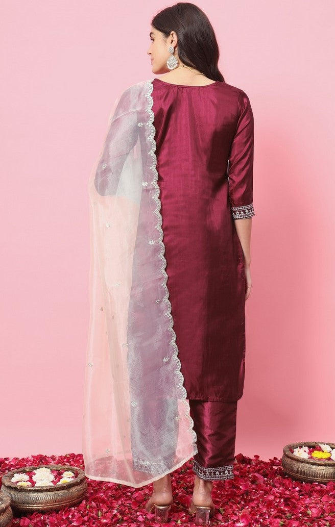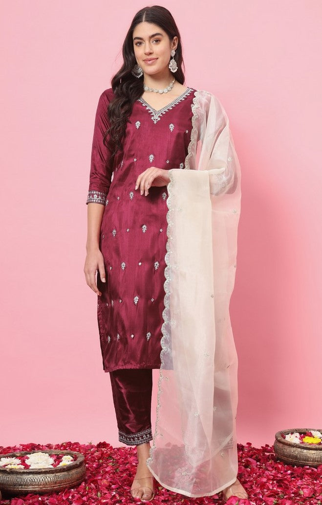 Beautiful Maroon Color Silk Fabric Designer Suit