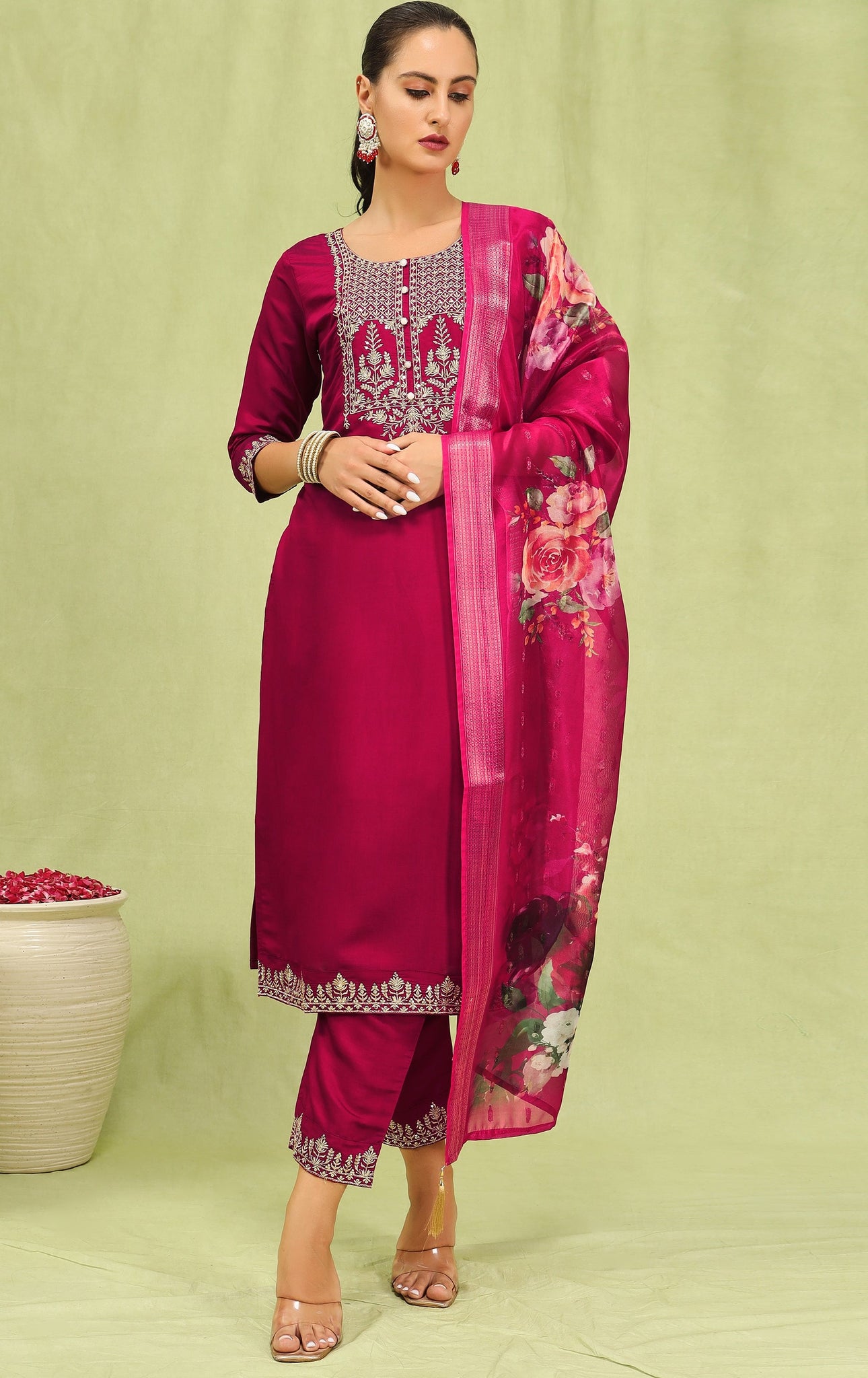 | Color | Top Color - Maroon, Bottom Color - Maroon, Dupatta Color - Maroon |