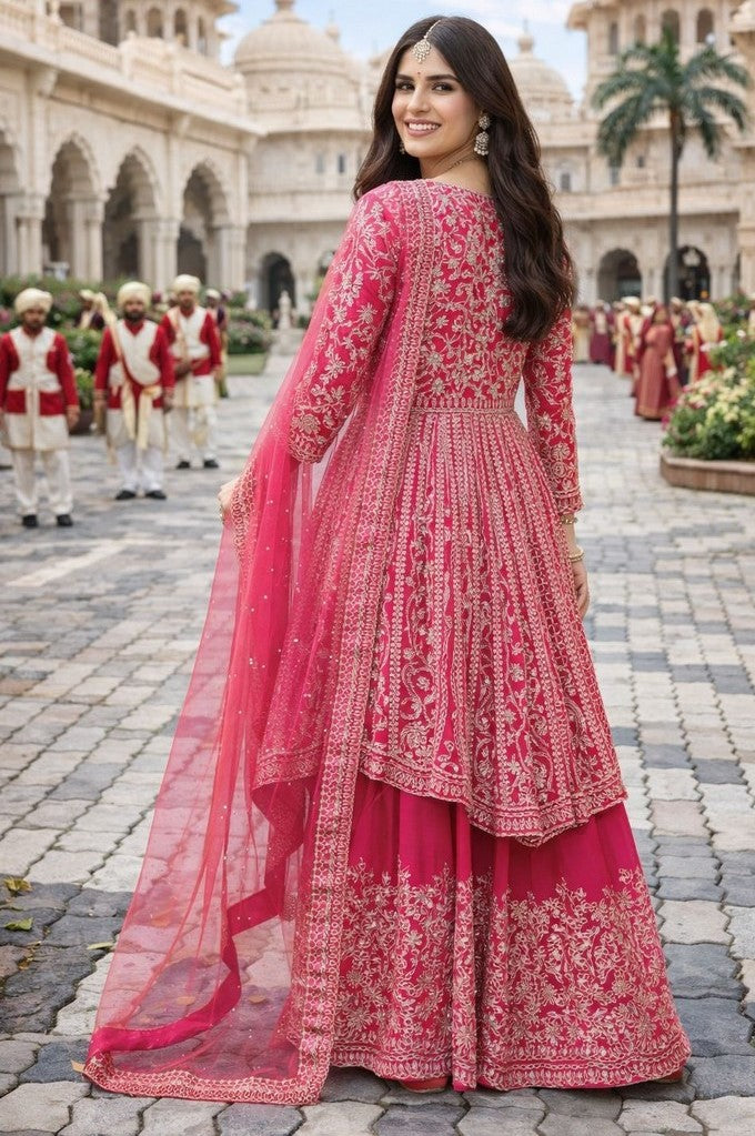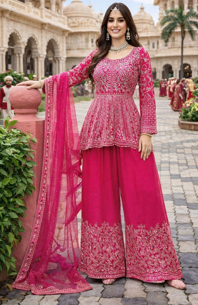 Beautiful Pink Color Chinon Fabric Plazzo Suit