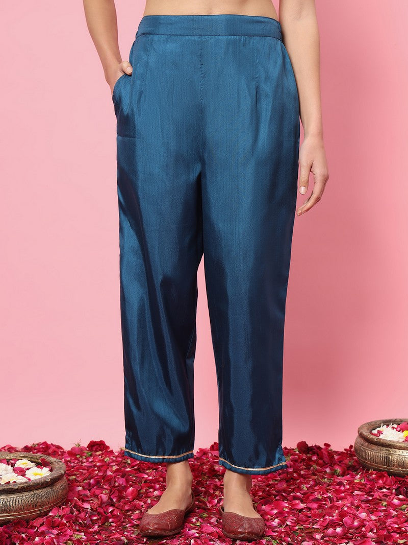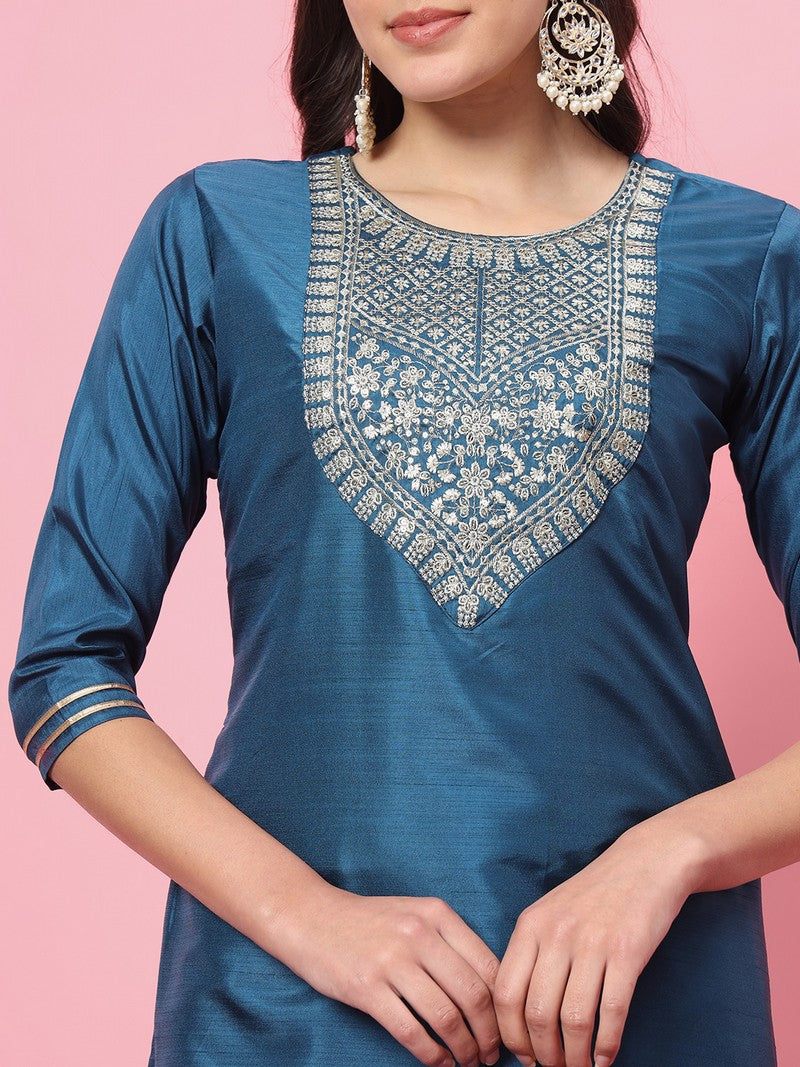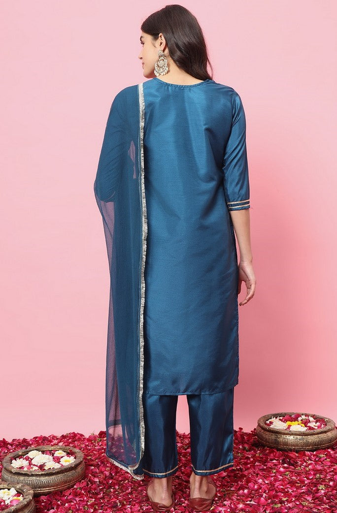 Beautiful Teal Color Silk Fabric Designer Suit