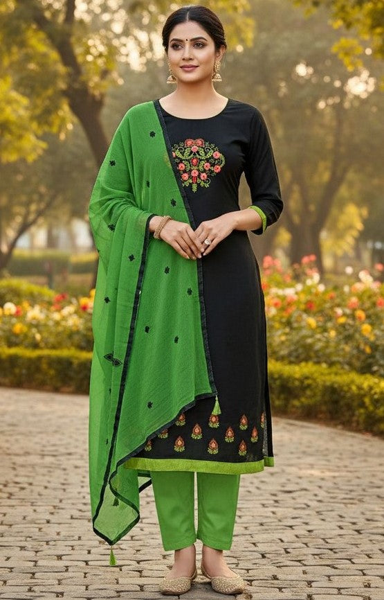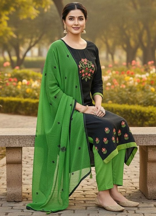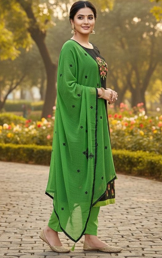 | Color | Top Color - Black, Bottom Color - Green, Dupatta Color - Green |
