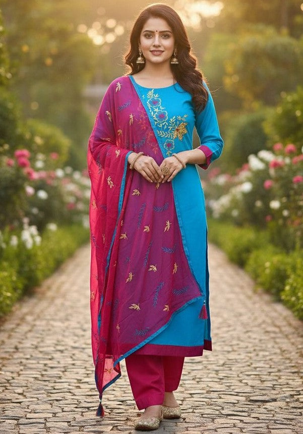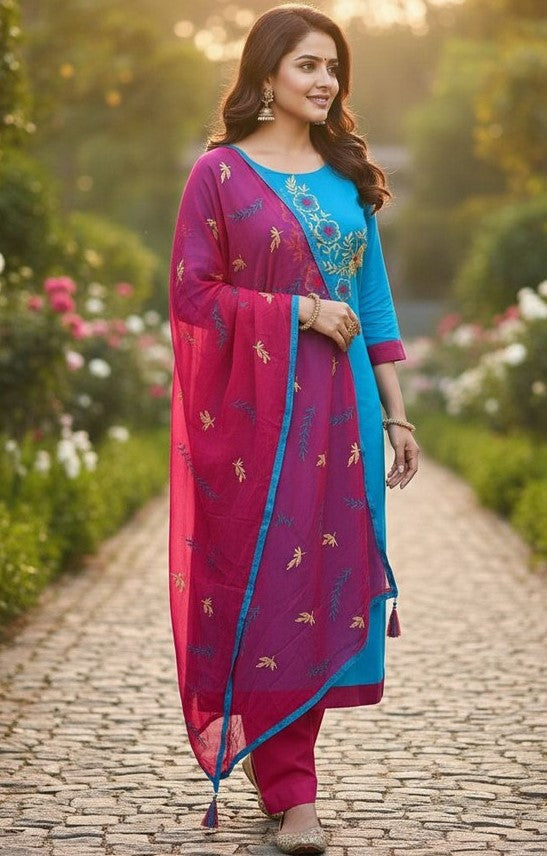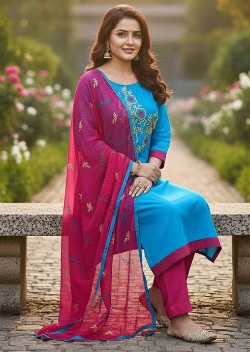 | Color | Top Color - Blue, Bottom Color - Pink, Dupatta Color - Pink |