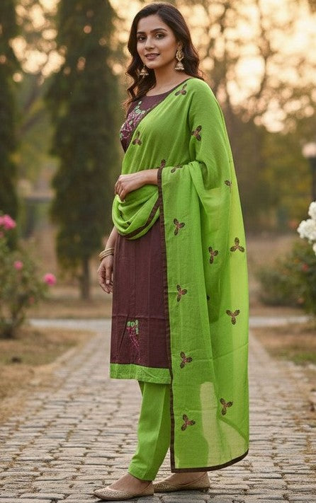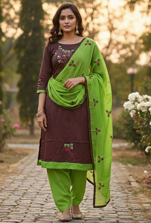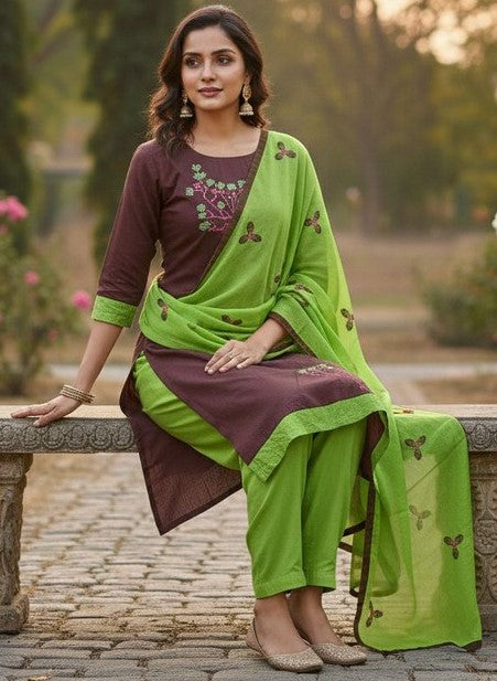 | Color | Top Color - Brown, Bottom Color - Green, Dupatta Color - Green |