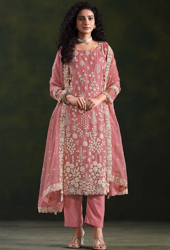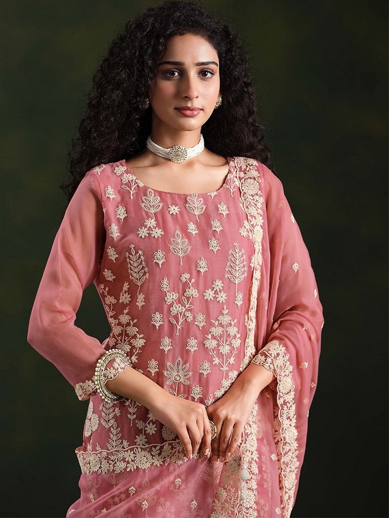 Classy Pink Color Chiffon Fabric Designer Suit