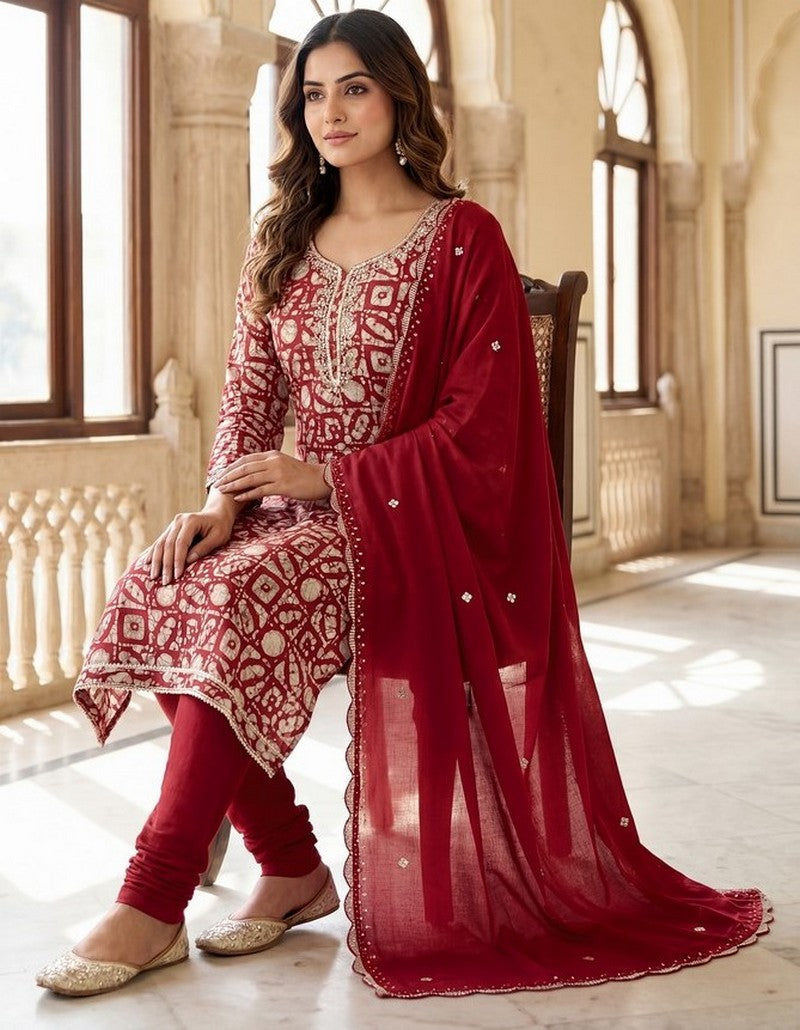 Classy Red Color Silk Fabric Designer Suit