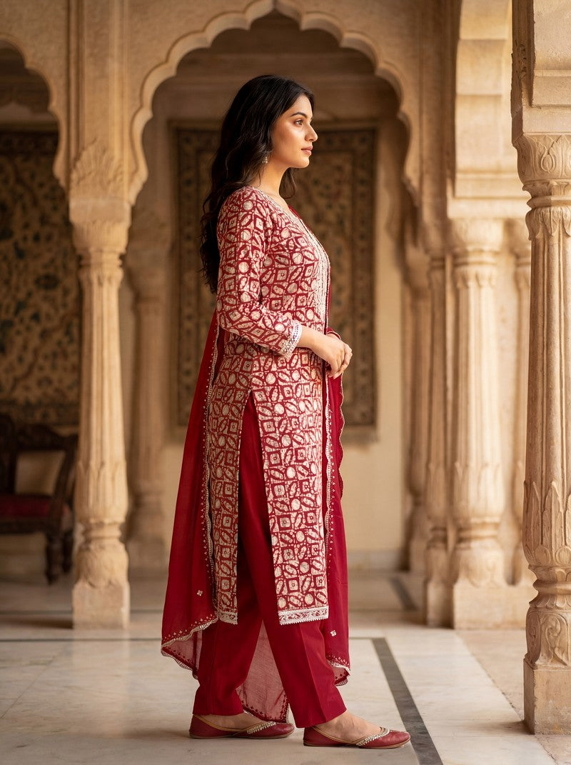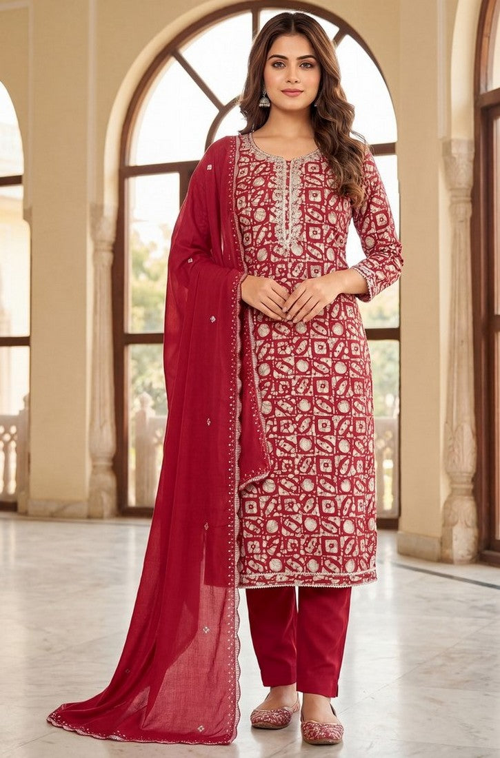 | Color | Top Color - Red, Bottom Color - Red, Dupatta Color - Red |