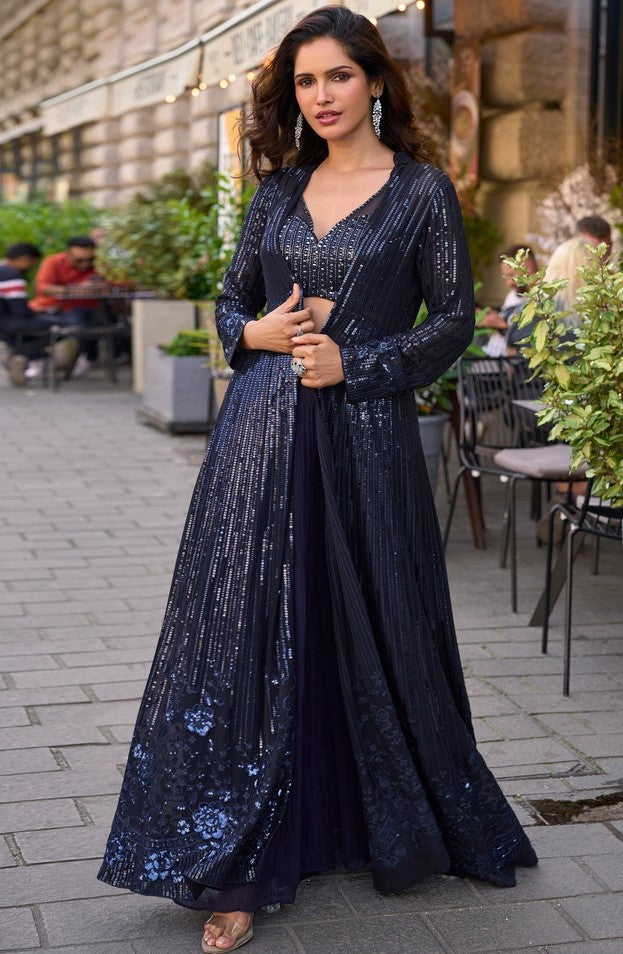 Divine Navy Blue Color Georgette Fabric Plazzo Suit