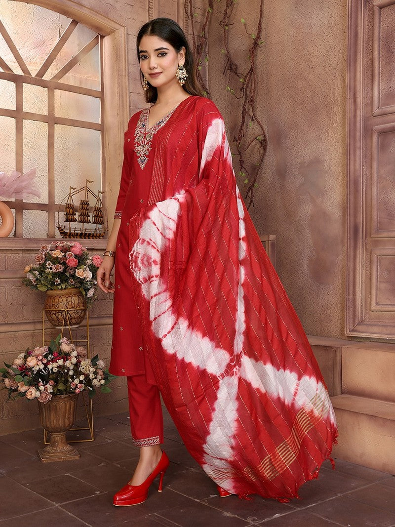 Divine Red Color Viscose Fabric Designer Suit