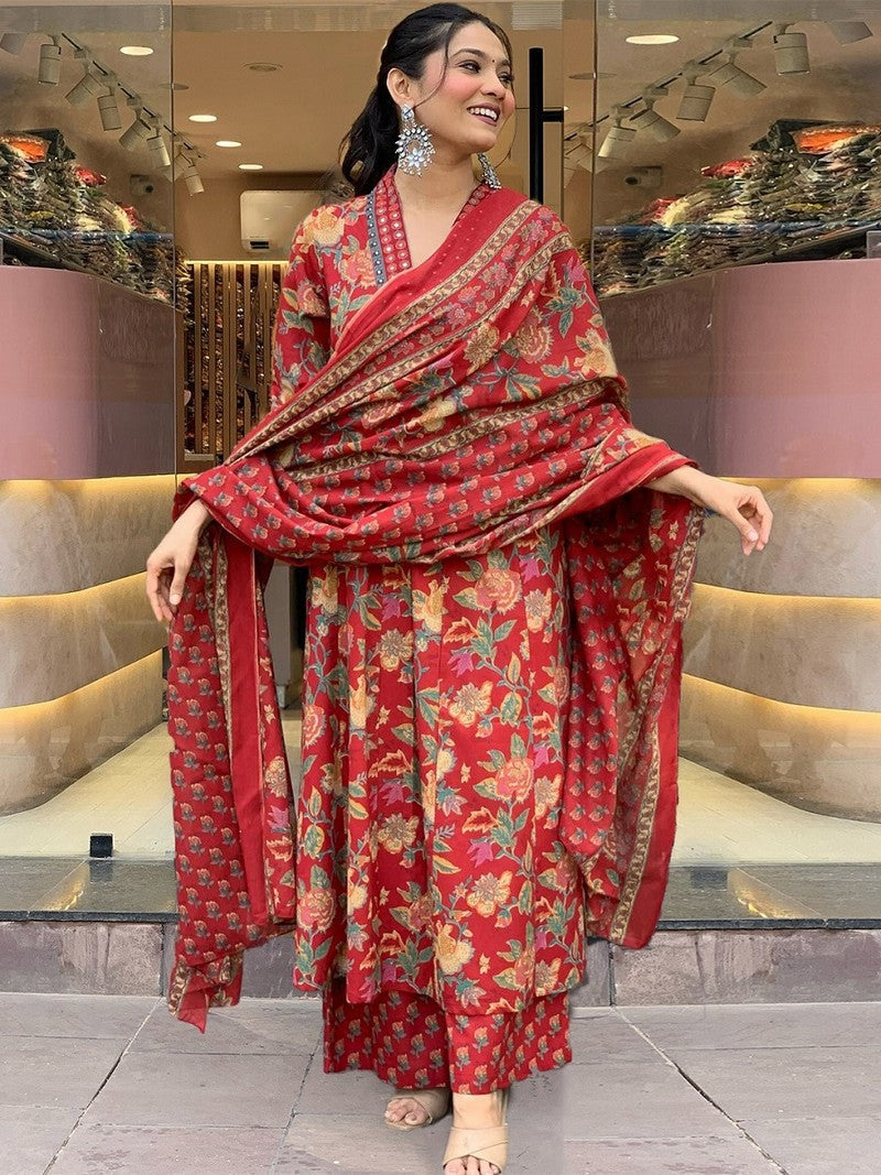 Color Top Color - Red, Bottom Color - Red, Dupatta Color - Red